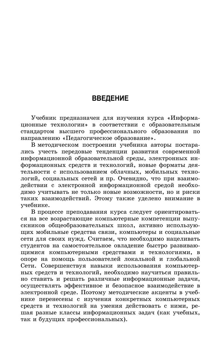 Учебник предназначен для изучения курса «Информационные технологии», в соответствии с образовательным стандартом высшего профессионального образования по направлению «Педагогическое образование».
