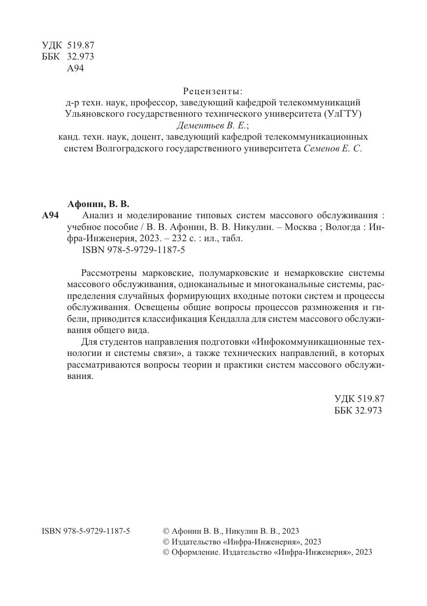 Для студентов направления подготовки «Инфокоммуникационные технологии и системы связи», а также технических направлений, в которых рассматриваются вопросы теории и практики систем массового обслуживания.