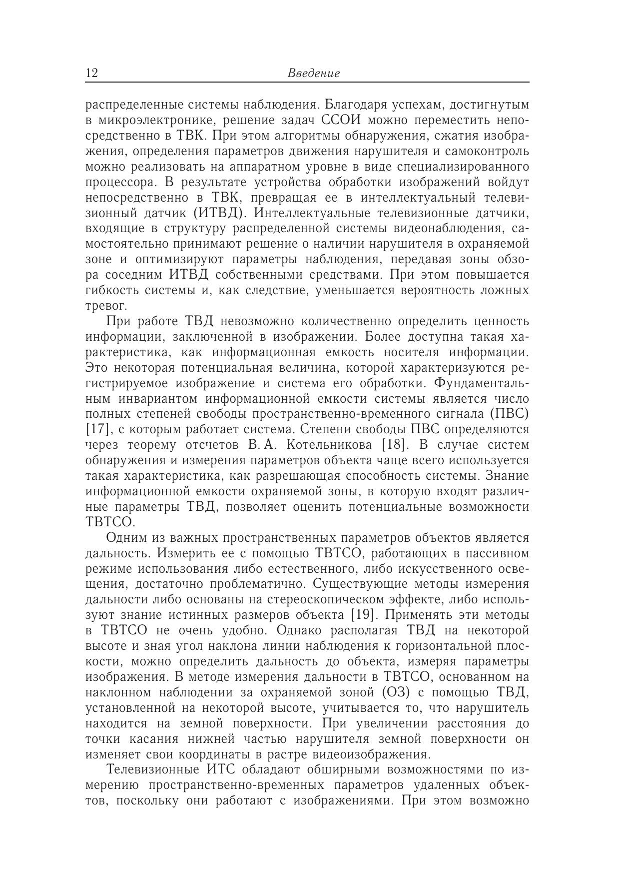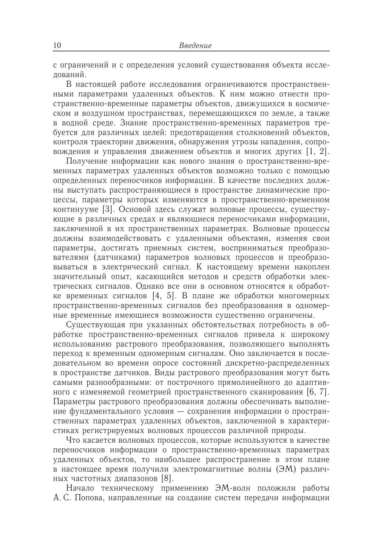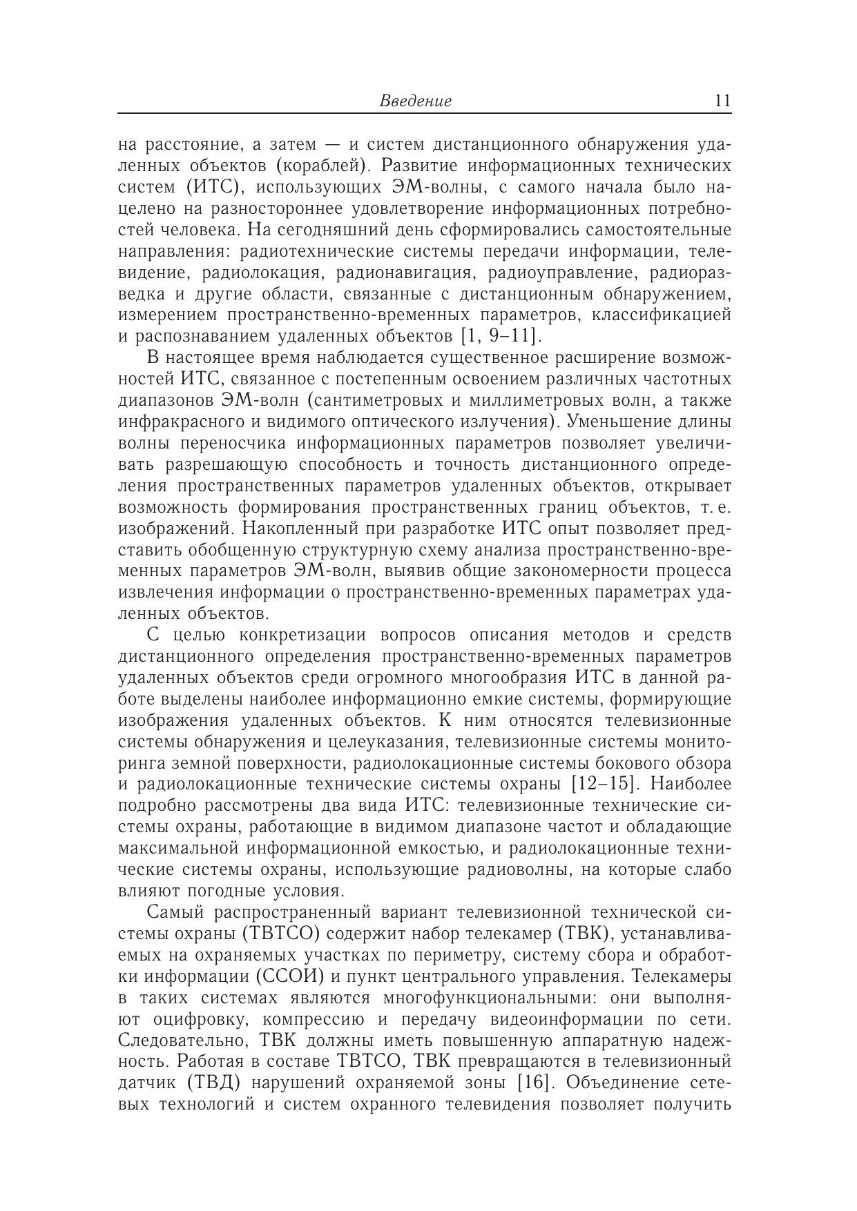 В книге рассмотрены методы анализа и преобразования пространственновременных сигналов в информационных технических системах, используемых для дистанционного измерения параметров объектов. В качестве конкретных примеров исследуются телевизионные технические системы охраны, обладающие максимальной информационной емкостью, радиолокационные технические системы охраны (РЛТСО), использующие электромагнитные волны радиодиапазона, на распространение которых минимальным образом влияют погодные условия. Для РЛТСО на основе пространственного анализа дифракции ЭМ-волн, полученной с использованием интеграла Кирхгофа, показана возможность формирования радиоизображения нарушителя охраняемой зоны, позволяющего не только измерить пространственные параметры объекта, но и классифицировать его. В качестве метода временного анализа рассмотрено применение вейвлет-преобразования в РЛТСО, которое позволяет существенно улучшить существующие характеристики обнаружения, а также измерить параметры движения нарушителя — дальность и скорость передвижения.Книга предназначена специалистам, занимающимся вопросами обработки пространственно-временных сигналов.