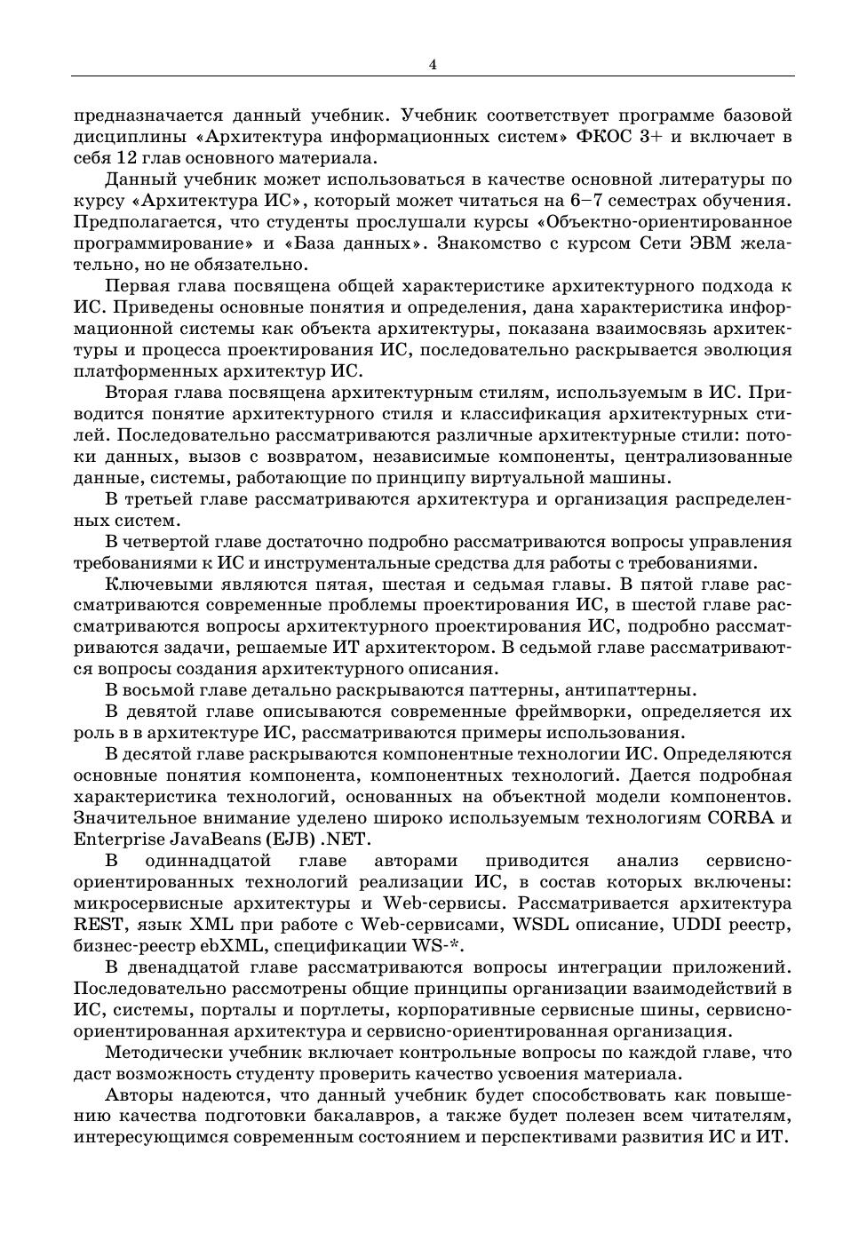 С позиций накопленного отечественного и зарубежного опыта исследованы вопросы решения задач проектирования информационных систем с использованием паттернов и каркасов, компонентной технологии, сервисно-ориентированных технологий, портальных технологий реализации информационных систем. Изложенный в учебнике теоретический материал сопровожден примерами архитектурных решений, взятых изз практики проектирования информационных систем.