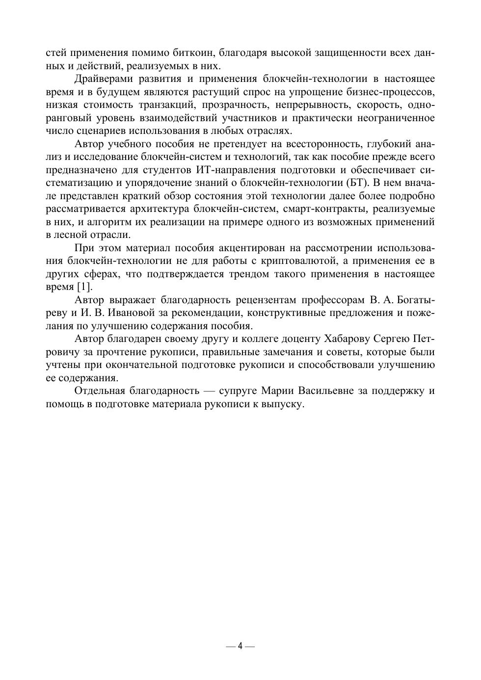 В книге представлен обзор состояния перспективной и быстроразвивающейся технологии распределенного реестра данных, или блокчейн. Подробно рассматривается архитектура блокчейн-систем и описание их аппаратно-программных компонент. Рассмотрены особенности смарт контрактов, реализуемых в блокчейн-сетях и пример возможного применения блокчейн в лесной логистике и поставке лесной продукции. Соответствует современным требованиям Федерального государственного образова-тельного стандарта среднего профессионального образования и профессиональным квали-фикационным требованиям. Учебное пособие предназначено для обучающихся в колледжах по образовательным программам среднего профессионального образования.