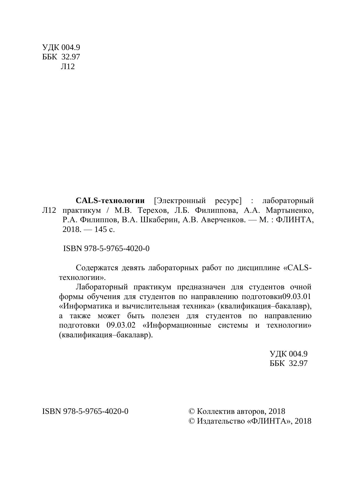 Содержатся девять лабораторных работ по дисциплине «CALS-технологии». Лабораторный практикум предназначен для студентов очной формы обучения для студентов по направлению подготовки09.03.01 «Информатика и вычислительная техника» (квалификация–бакалавр), а также может быть полезен для студентов по направлению подготовки 09.03.02 «Информационные системы и технологии» (квалификация–бакалавр).