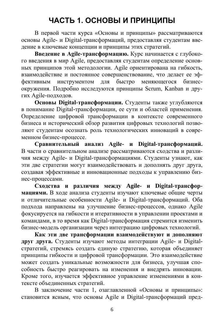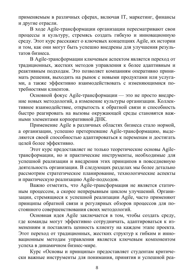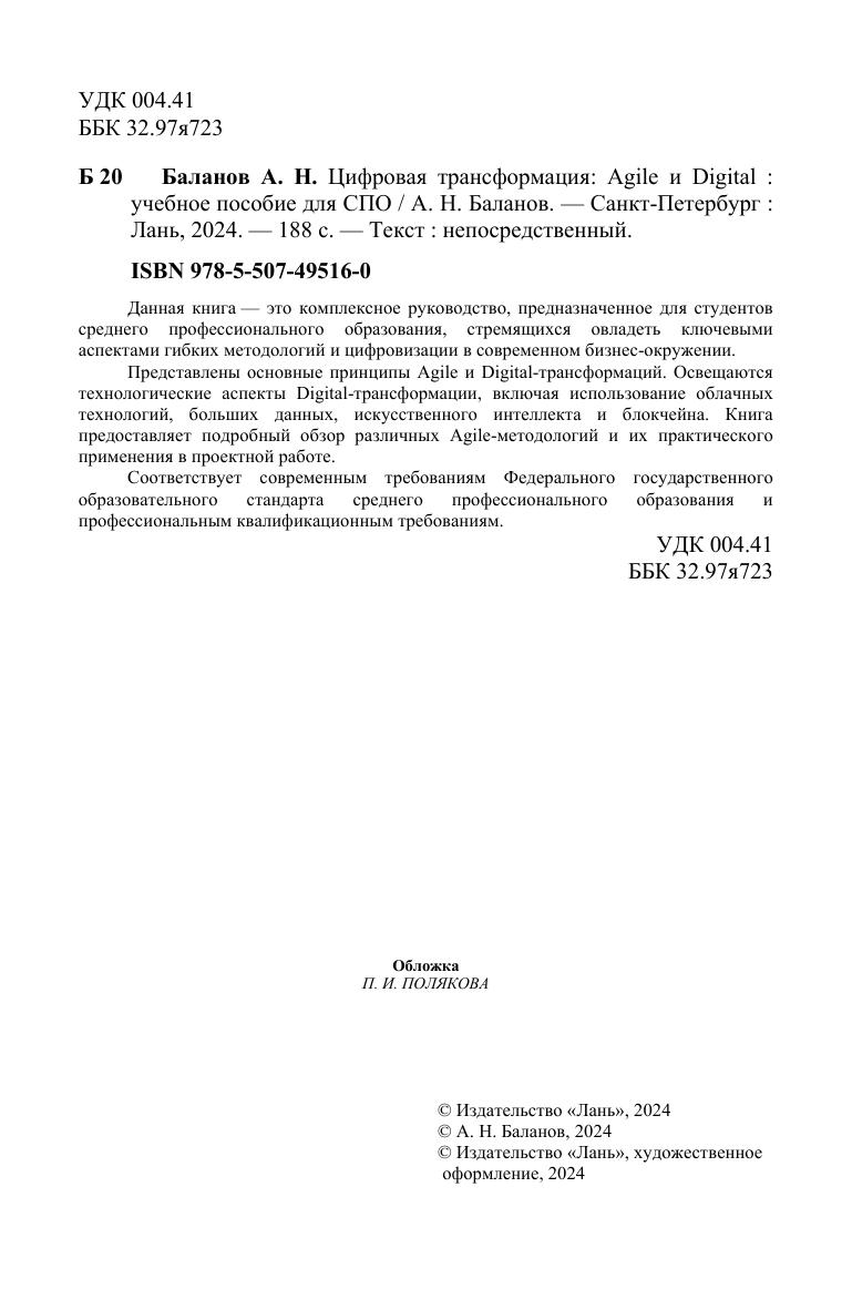 Данная книга — это комплексное руководство, предназначенное для студентов среднего профессионального образования, стремящихся овладеть ключевыми аспектами гибких методологий и цифровизации в современном бизнес-окружении. Представлены основные принципы Agile и Digital-трансформаций. Освещаются технологические аспекты Digital-трансформации, включая использование облачных технологий, больших данных, искусственного интеллекта и блокчейна. Книга предоставляет подробный обзор различных Agile-методологий и их практического применения в проектной работе. Соответствует современным требованиям Федерального государственного образовательного стандарта среднего профессионального образования и профессиональным квалификационным требованиям.