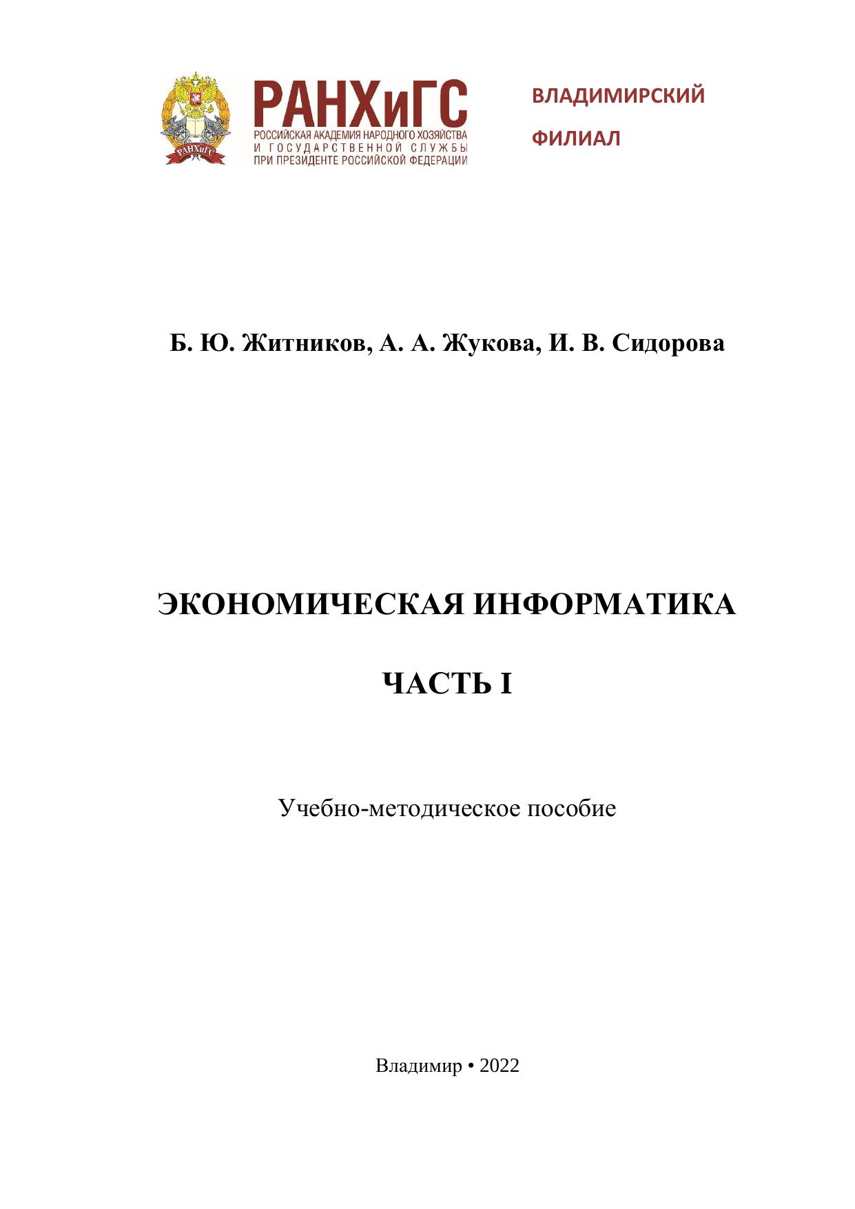 Экономическая информатика. Часть I