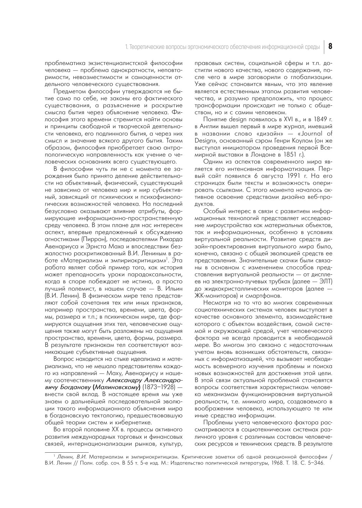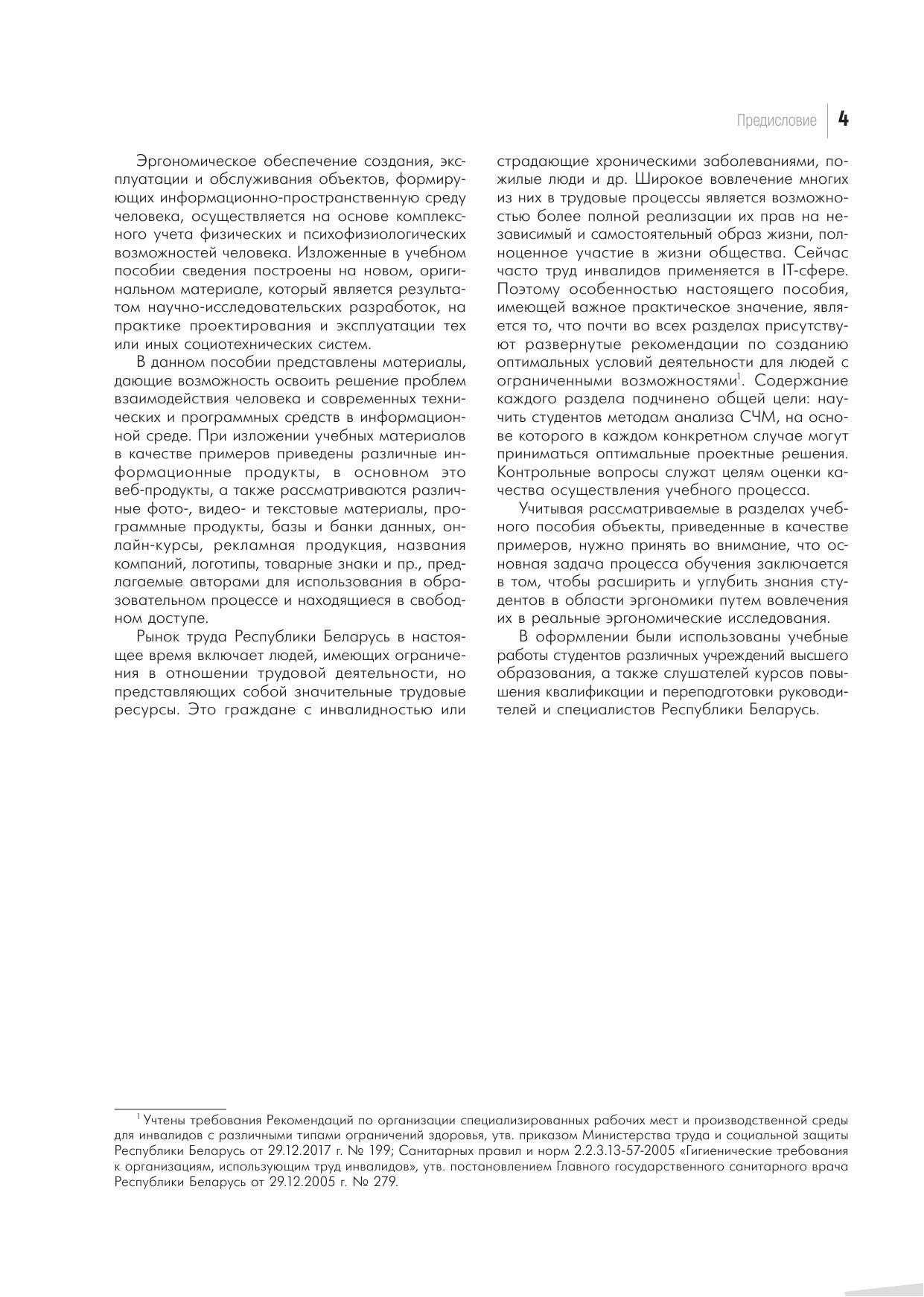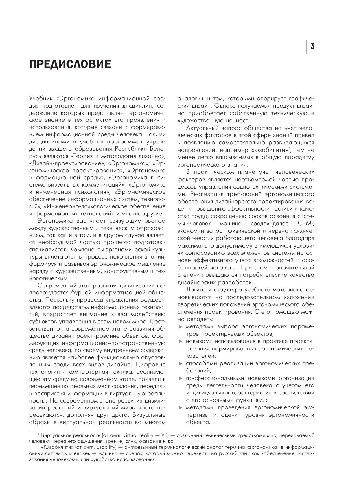 Содержит учебный материал, предназначенный для практического освоения эргономического знания и реализации эргономических требований в проектной и управленческой деятельности, методические пояснения для осуществления проектирования на практике. Приводимый обширный иллюстративный материал, а также многочисленные примеры будут способствовать повышению проектной культуры обучающихся. Благодаря достаточно большому количеству конкретных эргономических параметров может использоваться в целях учебного и реального проектирования объектов информационной среды. Для преподавателей и студентов учреждений высшего образования, дизайнеров, архитекторов, программистов и других специалистов IT-сферы.