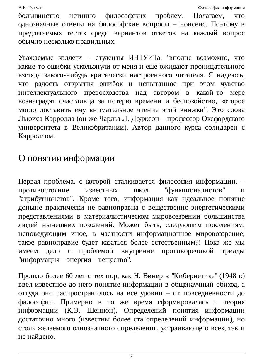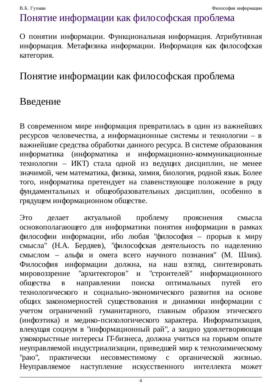 Философия информации относится к дисциплинам фундаментальной подготовки. В данном курсе наряду с проверенными временем концепциями, автор обращает внимание и на свежие и непривычные для большинства из нас идеи. В современном мире информация превратилась в один из важнейших ресурсов человечества, а информационные системы и технологии – в важнейшие средства обработки данного ресурса. В курсе подробно рассмотрены предмет, объект и основные задачи исследования философии информации