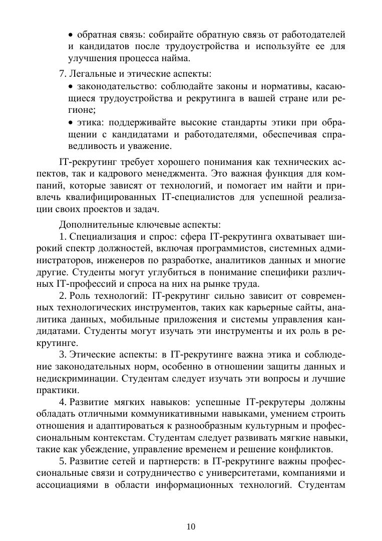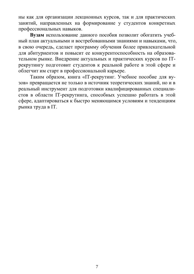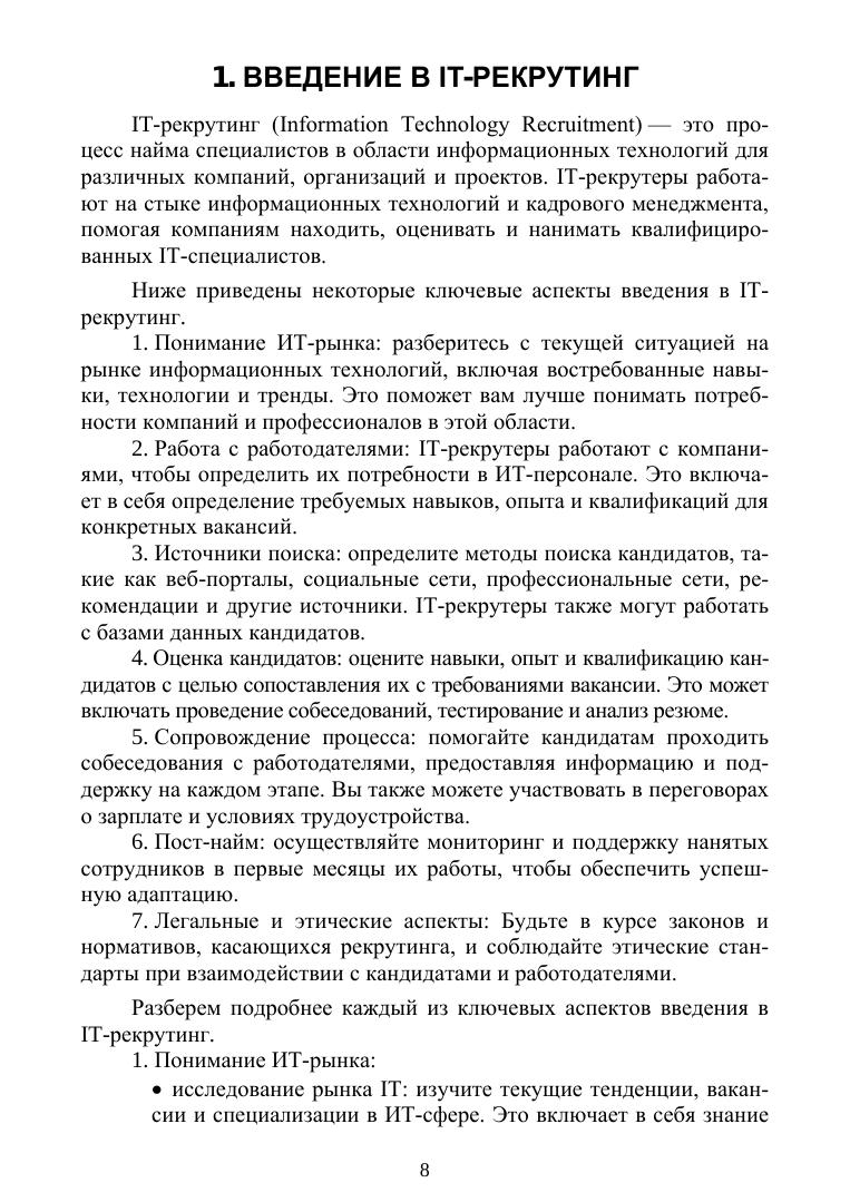 Это учебное пособие вводит студентов и преподавателей вузов в динамичный и многогранный мир IT-рекрутинга, предоставляя не просто теоретические основы, но и конкретные, адаптированные под реальный мир навыки и знания. Пособие строит мост между академическими знаниями и практическими навыками, интегрируя академический и профессиональный подходы к изучению рекрутинга в IT-сфере.