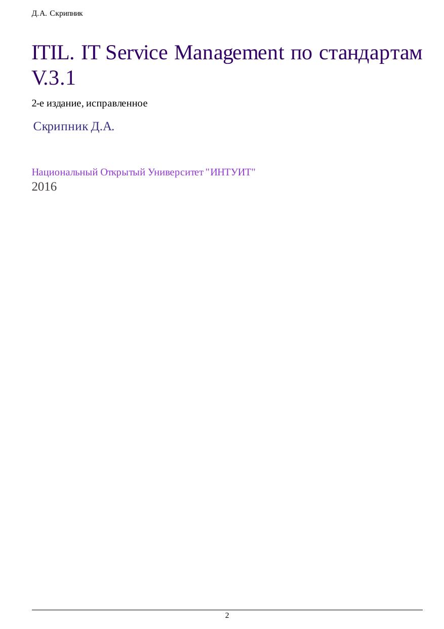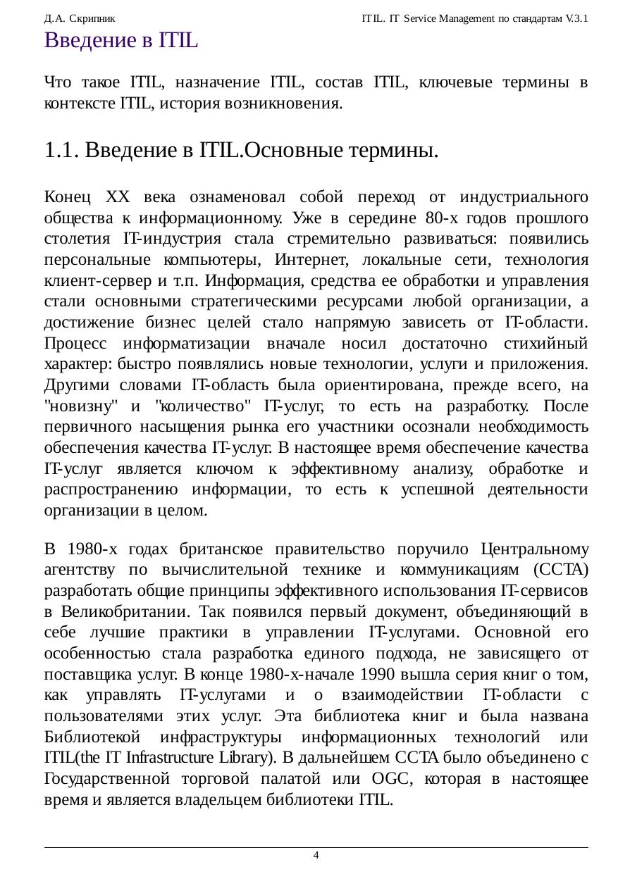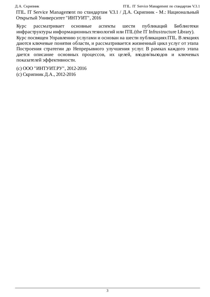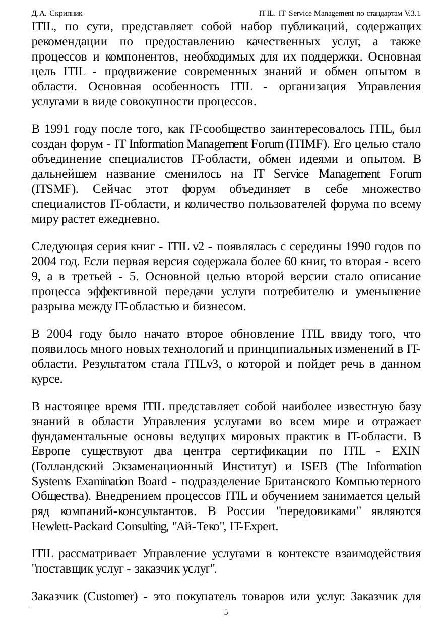 ITIL. IT Service Management по стандартам V.3.1