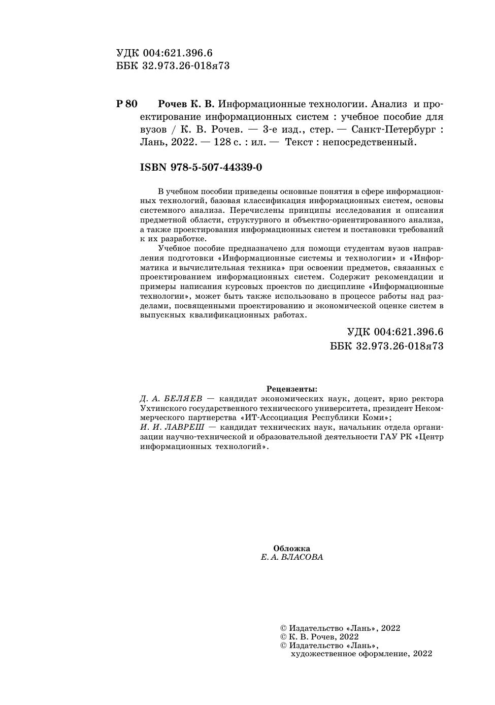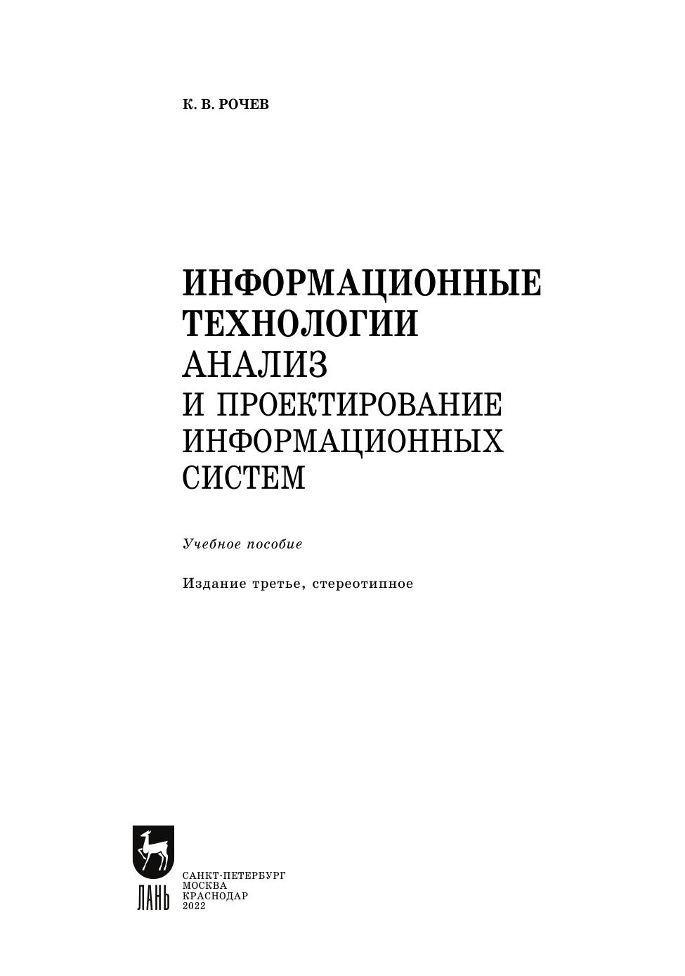 В учебном пособии приведены основные понятия в сфере информационных технологий, базовая классификация информационных систем, основы системного анализа. Перечислены принципы исследования и описания предметной области, структурного и объектно-ориентированного анализа, а также проектирования информационных систем и постановки требований к их разработке.