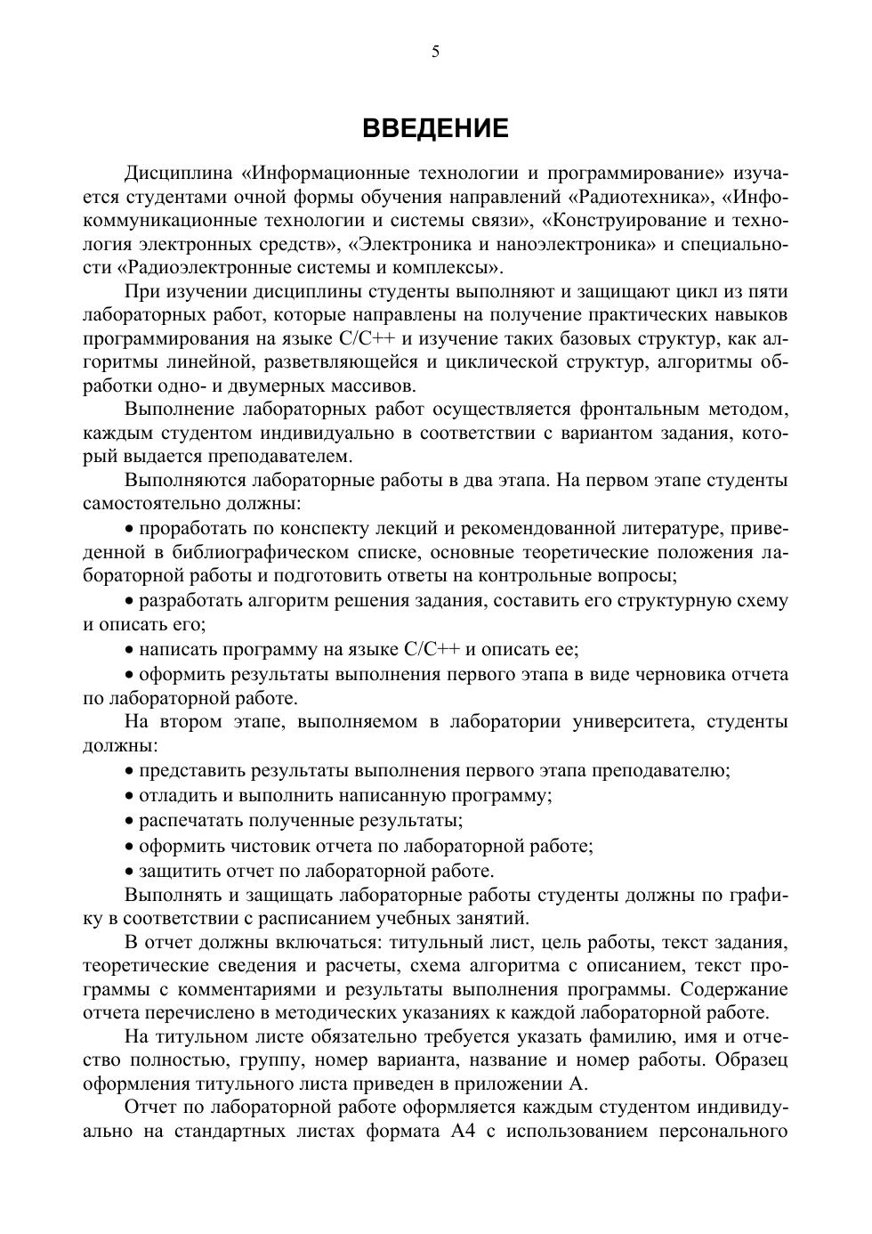 Учебное пособие предназначено для учащихся средних специальных учебных заведений. Оно включает в себя пять лабораторных работ, которые направлены на получение практических навыков программирования на языке С/С++ и изучение таких базовых структур, как алгоритмы линейной, разветвляющейся и циклической структур, алгоритмы обработки одномерных и двумерных массивов. Соответствует современным требованиям Федерального государственного образовательного стандарта среднего профессионального образования и профессиональным квалификационным требованиям.