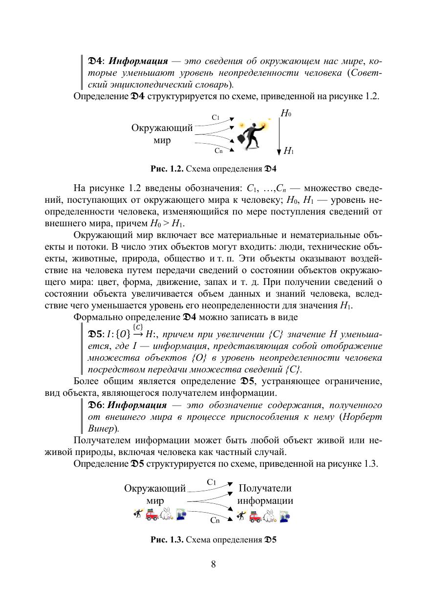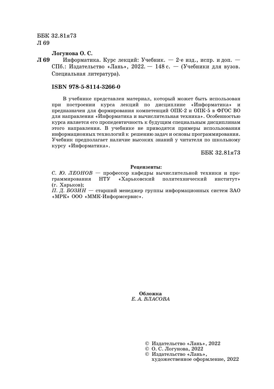 В учебном пособии представлен материал, который может быть использован при построении курса лекций по дисциплине «Информатика» и предназначен для формирование компетенций ОПК-2 и ОПК-5 в ФГОС ВО для направления «Информатика и вычислительная техника». Особенностью курса является его пропедевтичность к будущим специальным дисциплинам этого направления. В учебном пособии не приводятся примеры использования информационных технологий к решению задач и основы программирования. Пособие предполагает наличие высоких знаний у читателя по школьному курсу «Информатика».