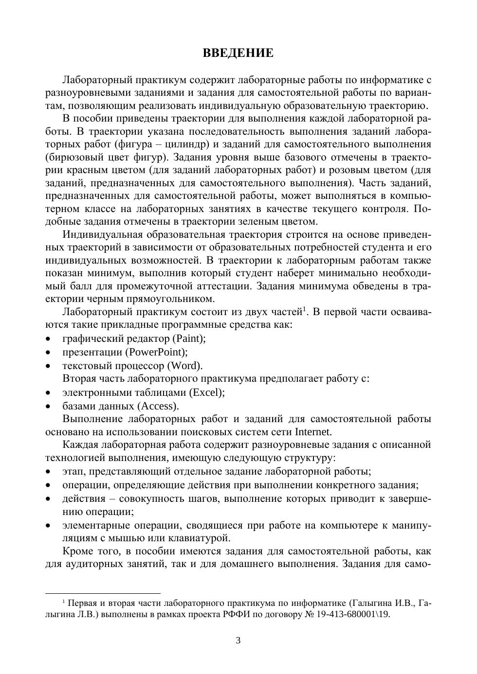 Практикум содержит лабораторные работы по информатике с разноуровневыми заданиями и задания для самостоятельной работы по вариантам, позволяющим реализовать индивидуальную образовательную траекторию. Вторая часть лабораторного практикума предназначена для освоения таких прикладных программных средств как электронные таблицы (Excel) и базы данных (Access). Кроме того, часть лабораторных работ посвящена созданию сайтов. Выполнение лабораторных работ и заданий для самостоятельной работы предполагает также использование поисковых систем сети Internet. Лабораторный практикум по инфор-матике состоит из двух частей. Первая и вторая части лабораторного практикума по информатике выполнены в рамках проекта РФФИ. Лабораторный практикум ориентирован на студентов, обучающихся в колледжах по образовательным программам среднего профессионального образования специальностей направлений подготовки «Архитектура», «Техника и технологии строительства», «Техника и технологии наземного транспорта», «Аэронавигация и эксплуатация авиационной и ракетно-космической техники», «Техника и технологии кораблестроения и водного транспорта», «Управление в технических системах», «Клини-ческая медицина», «Сельское, лесное и рыбное хозяйство». Соответствует современным требованиям Федерального государственного образовательного стандарта среднего профессионального образования и профессиональным квалификационным требованиям.