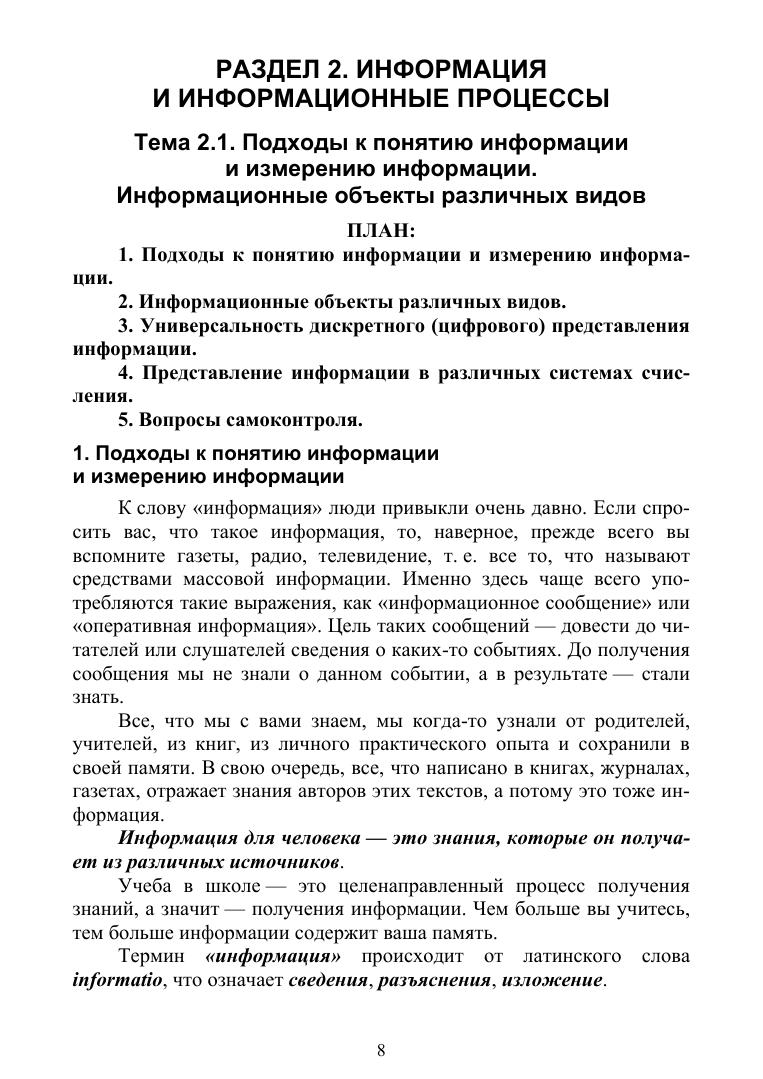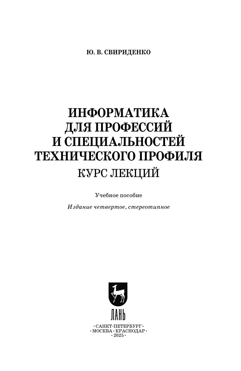 В учебном пособии рассмотрены основные понятия информатики как дисциплины. Курс лекций предназначен для студентов дневной и заочной форм обучения, для специальностей технического профиля. Соответствует современным требованиям Федерального государственного образовательного стандарта среднего профессионального образования и профессиональным квалификационным требованиям.