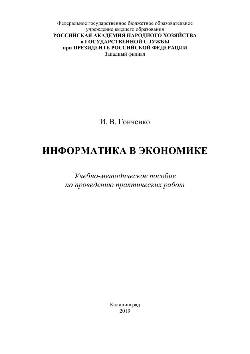 Информатика в экономике по проведению практических работ