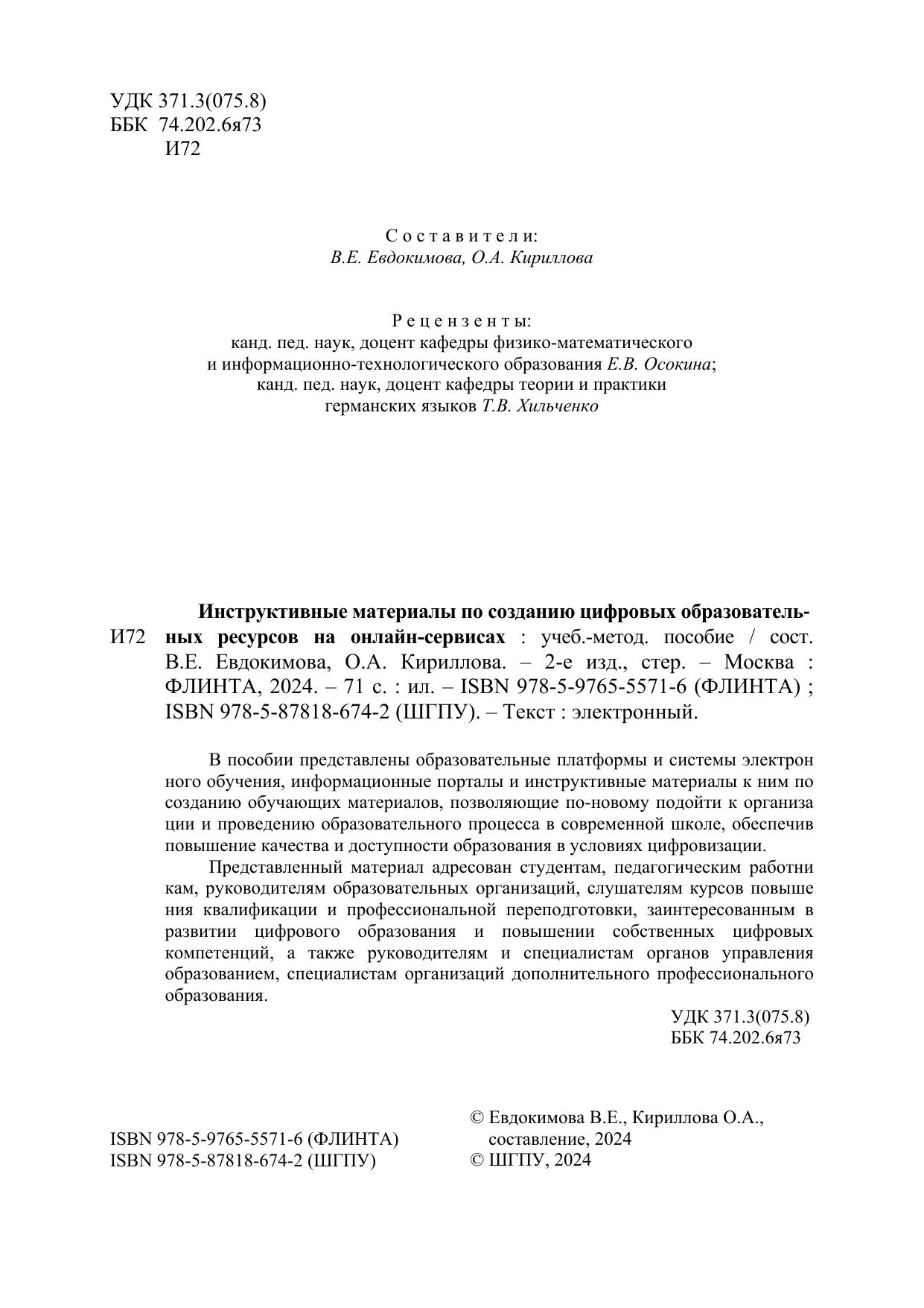 В пособии представлены образовательные платформы и системы электронного обучения, информационные порталы и инструктивные материалы к ним по созданию обучающих материалов, позволяющие по-новому подойти к организации и проведению образовательного процесса в современной школе, обеспечив повышение качества и доступности образования в условиях цифровизации.