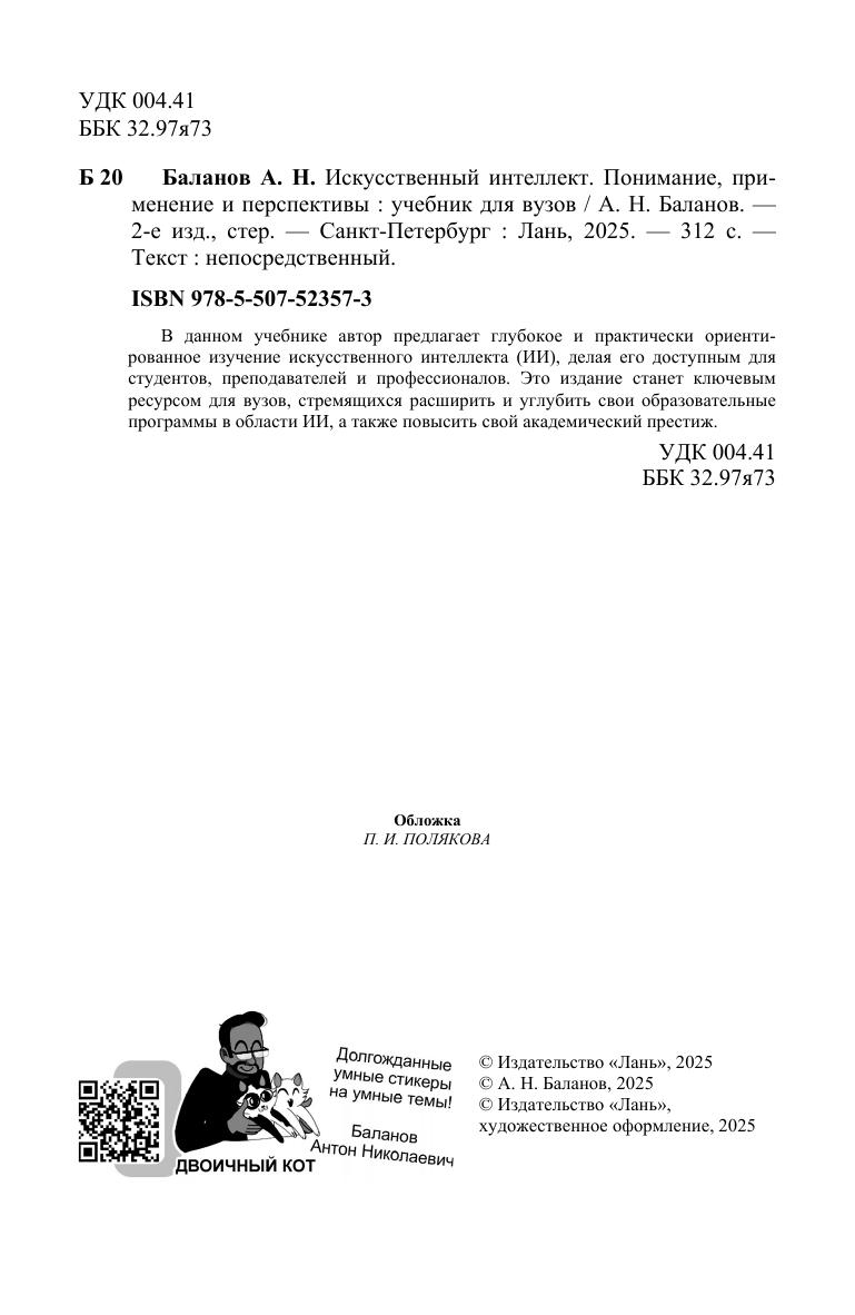 В данном учебнике автор предлагает глубокое и практически ориентированное изучение искусственного интеллекта (ИИ), делая его доступным для студентов, преподавателей и профессионалов. Это издание станет ключевым ресурсом для вузов, стремящихся расширить и углубить свои образовательные программы в области ИИ, а также повысить свой академический престиж.