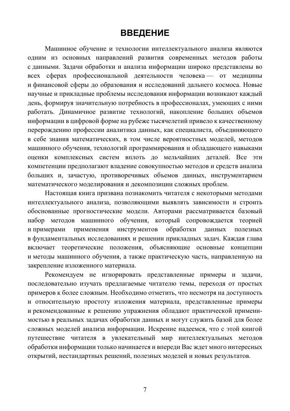 Книга может быть использована в качестве учебного пособия для студентов колледжей при изучении дисциплин, связанных с методами искусственного интеллекта и машинного обучения в прикладных задачах анализа данных. Книга содержит теоретический и практико-ориентированный материал и может быть востребована как в рамках изучения соответствующих разделов науки о данных, так и при решении научных и бизнес-задач. Теоретический материал дополнен практическими заданиями, изложенными в виде рабочих тетрадей, содержащих примеры и решениями, а также задачи для самостоятельной работы. Соответствует современным требованиям Федерального государственного образовательного стандарта среднего профессионального образования и профессиональным квалификационным требованиям.