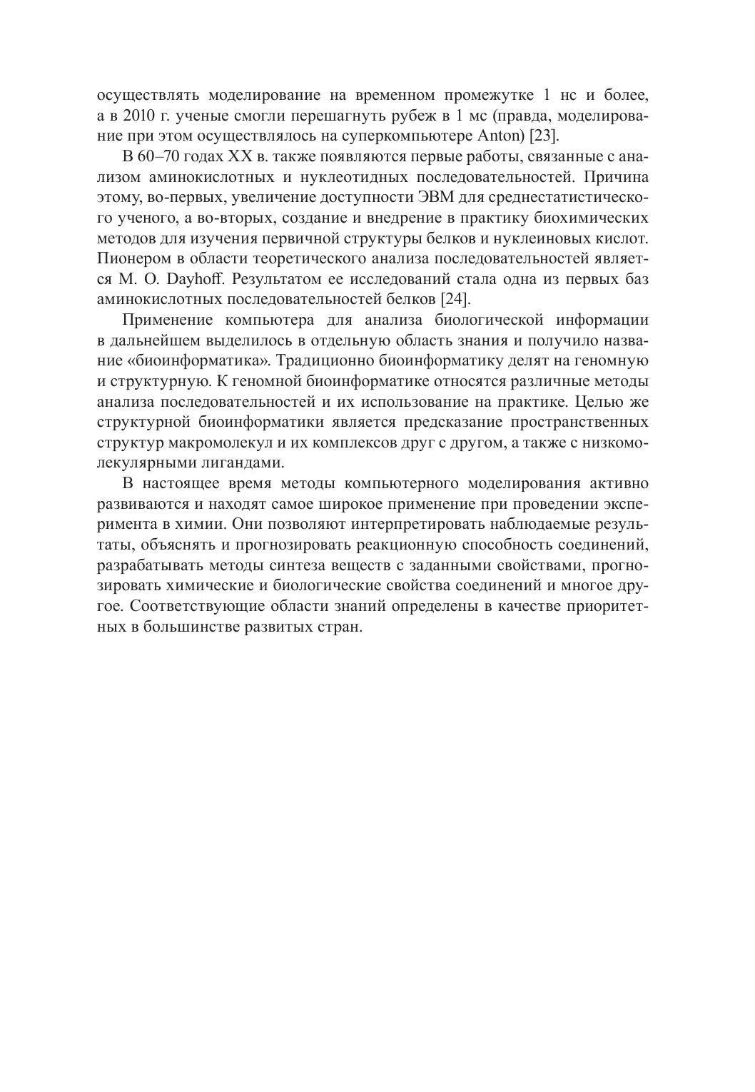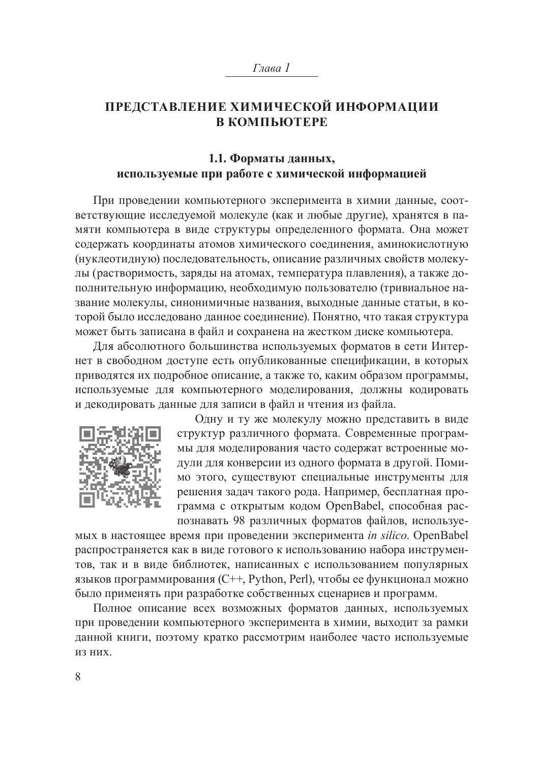 Рассматриваются различные аспекты применения современных методов компьютерного моделирования в химии и вопросы представления химической информации в цифровой форме; экспериментальные подходы, применяемые для получения сведений о пространственной структуре молекул; способы оптимизации геометрии и конформационного анализа молекул; методы компьютерного моделирования белков, а также технологии, используемые при проведении масштабных скрининговых исследований in silico.