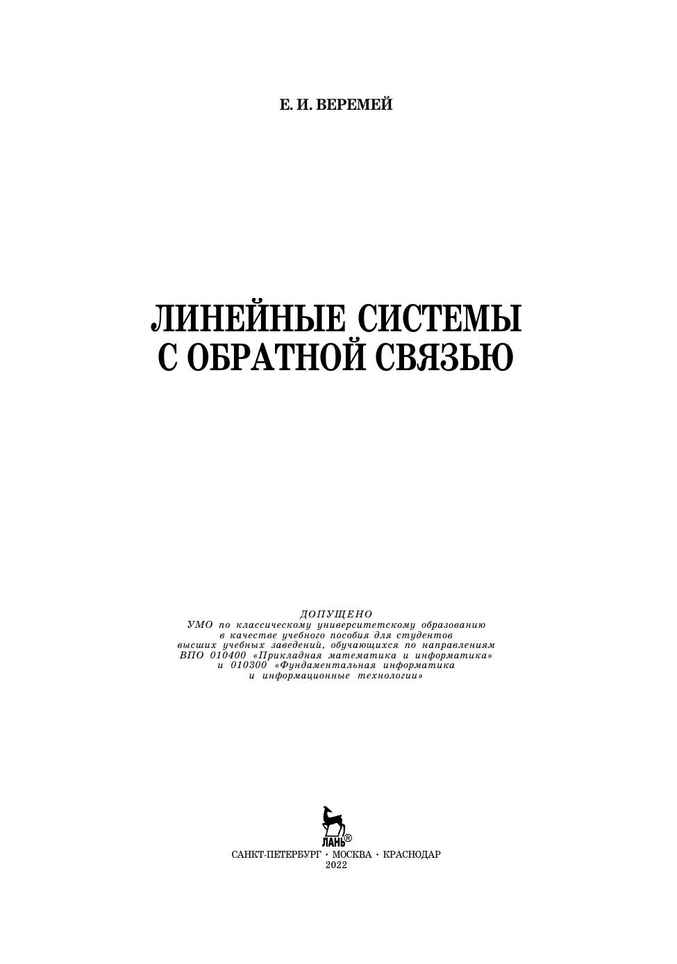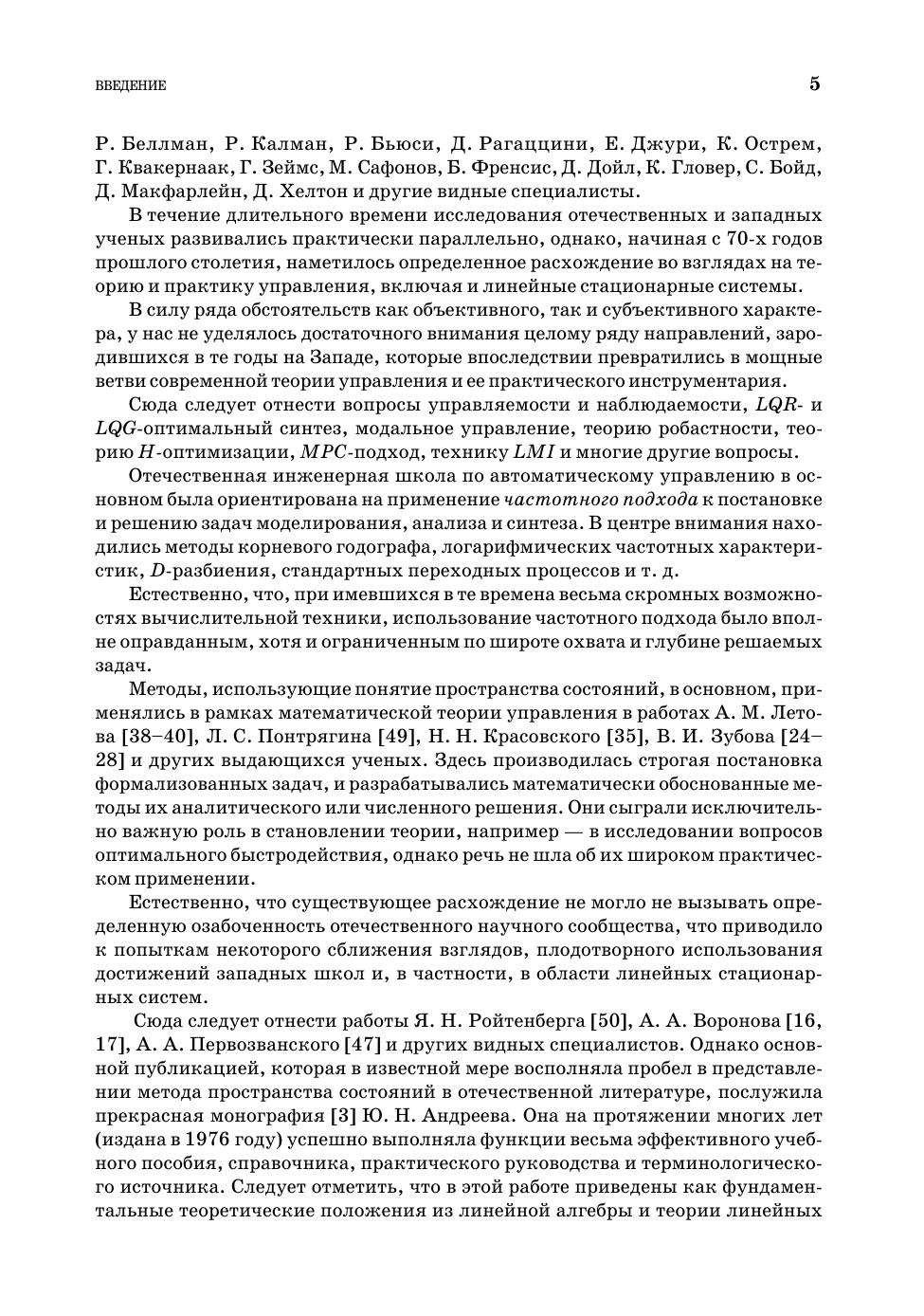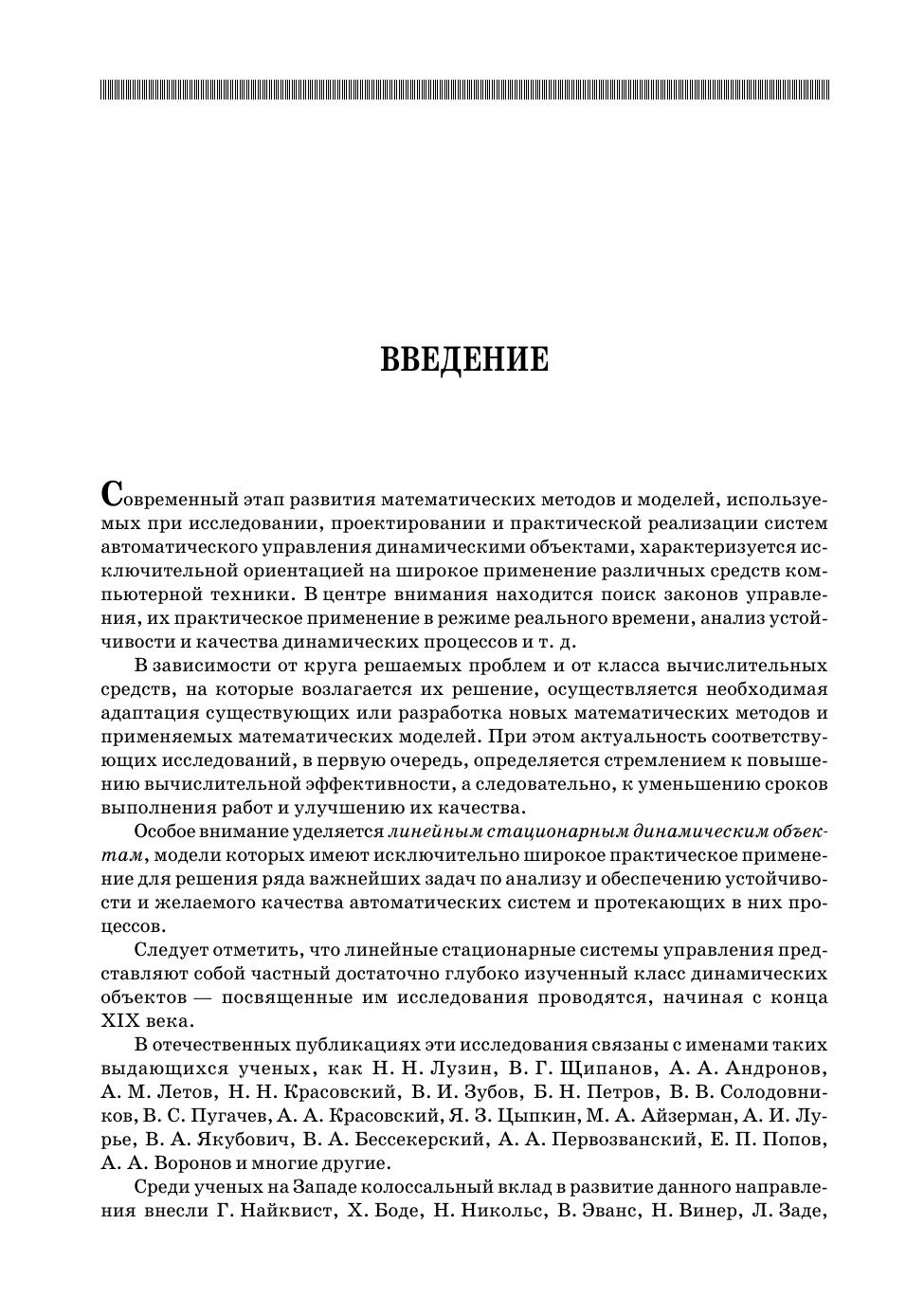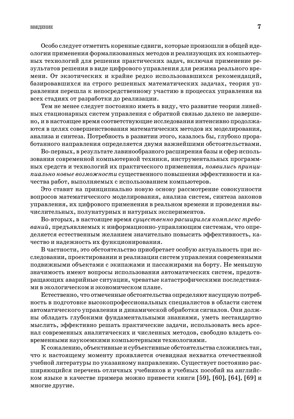 Книга посвящена рассмотрению центральных вопросов, определяющих современные подходы к моделированию, анализу и синтезу линейных стационарных систем с обратными связями. Эти системы в настоящее время исключительно широко применяются для обработки сигналов и для управления динамическими объектами различной природы. Во главу угла в основном поставлены те аспекты теории и практические приемы, которые в недостаточной мере отражены в отечественных публикациях. Важную роль в изложении играет компьютерная поддержка рассматриваемых вопросов, которая базируется на широко распространенной интегрированной среде MATLAB–Simulink. Книга может быть использована как учебное пособие для студентов старших курсов и аспирантов факультетов прикладной математики, обучающихся в бакалавриате и магистратуре по направлениям «Прикладная математика и информатика» и «Фундаментальная информатика и информационные технологии». Книга может быть полезна и для специалистов с высшим образованием, работающих в области проектирования систем управления движением динамических объектов (в частности — морских судов различного назначения).