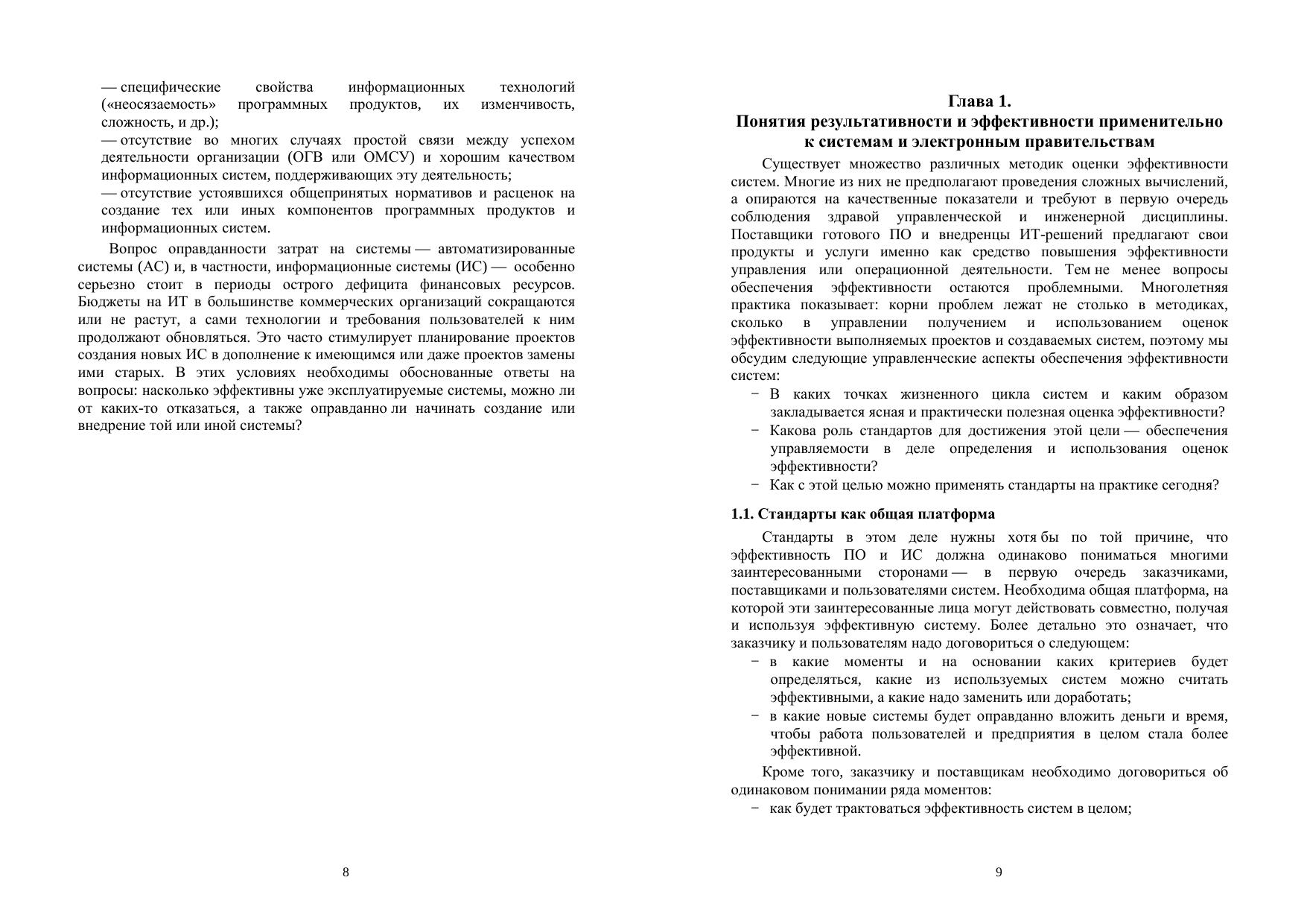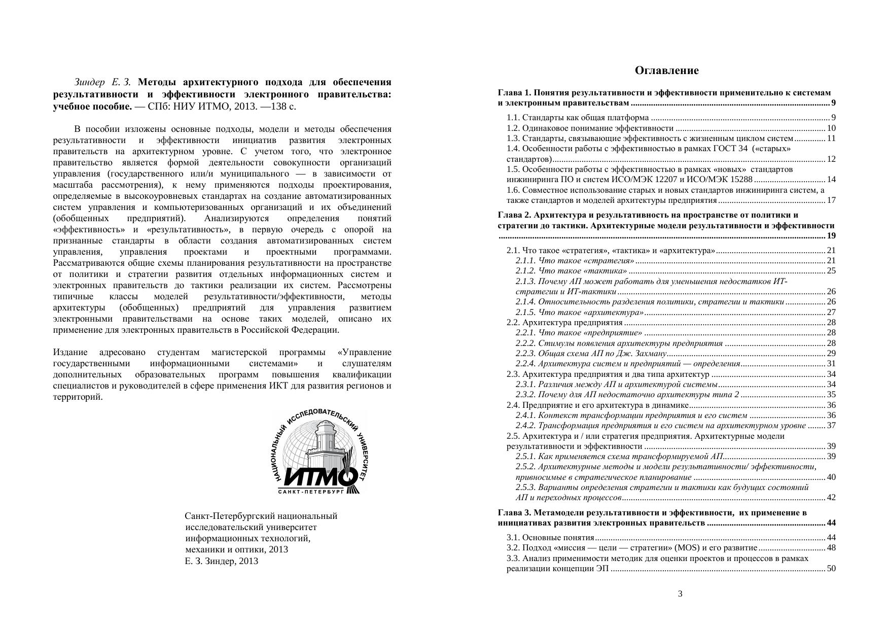 В пособии изложены основные подходы, модели и методы обеспечения результативности и эффективности инициатив развития электронных правительств на архитектурном уровне. С учетом того, что электронное правительство является формой деятельности совокупности организаций управления (государственного или/и муниципального — в зависимости от масштаба рассмотрения), к нему применяются подходы проектирования, определяемые в высокоуровневых стандартах на создание автоматизированных систем управления и компьютеризованных организаций и их объединений (обобщенных предприятий). Анализируются определения понятий «эффективность» и «результативность», в первую очередь с опорой на признанные стандарты в области создания автоматизированных систем управления, управления проектами и проектными программами. Рассматриваются общие схемы планирования результативности на пространстве от политики и стратегии развития отдельных информационных систем и электронных правительств до тактики реализации их систем. Рассмотрены типичные классы моделей результативности/эффективности, методы архитектуры (обобщенных) предприятий для управления развитием электронными правительствами на основе таких моделей, описано их применение для электронных правительств в Российской Федерации. Издание адресовано студентам магистерской программы «Управление государственными информационными системами» и слушателям дополнительных образовательных программ повышения квалификации специалистов и руководителей в сфере применения ИКТ для развития регионов и территорий.