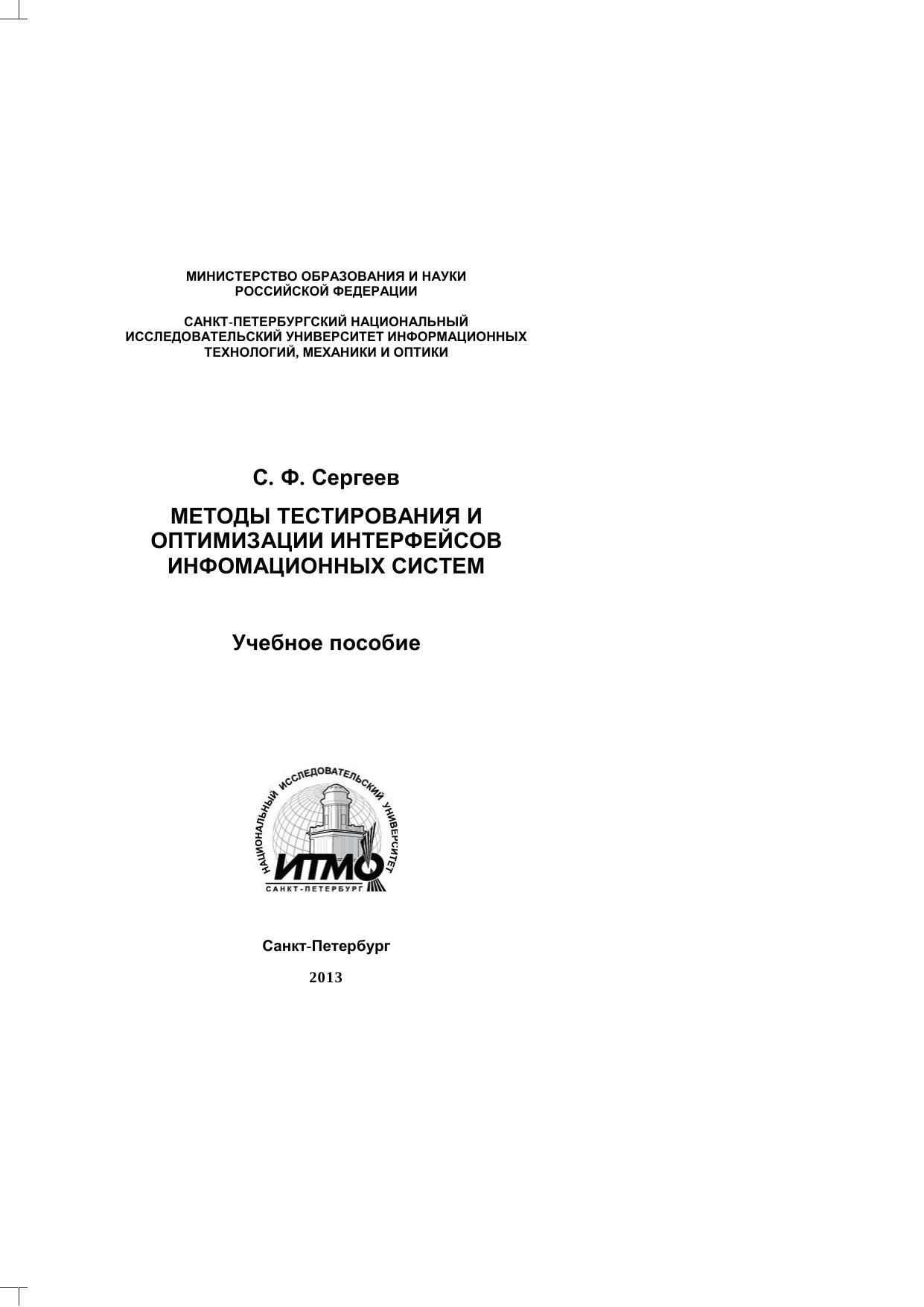 Рассматриваются теоретические и прикладные вопросы юзабилититестирования программных интерфейсов для терминалов системы электронного правительства. Описаны конкретные процедуры и программно-методические средства для юзабилити-тестирования программных интерфейсов. Даны рекомендации в области юзабилити для проектировщиков программных интерфейсов. Издание адресовано студентам магистерской программы «Управление государственными информационными системами» и слушателям дополнительной образовательной программы повышения квалификации «Электронное правительство и инновационные технологии управления», реализуемой Центром технологий электронного правительства НИУ ИТМО.