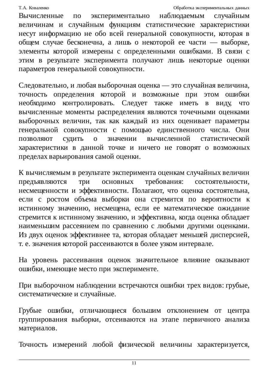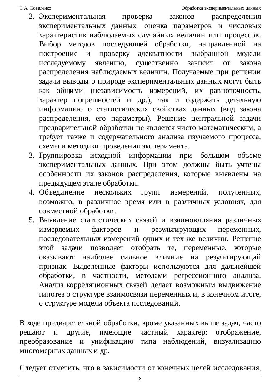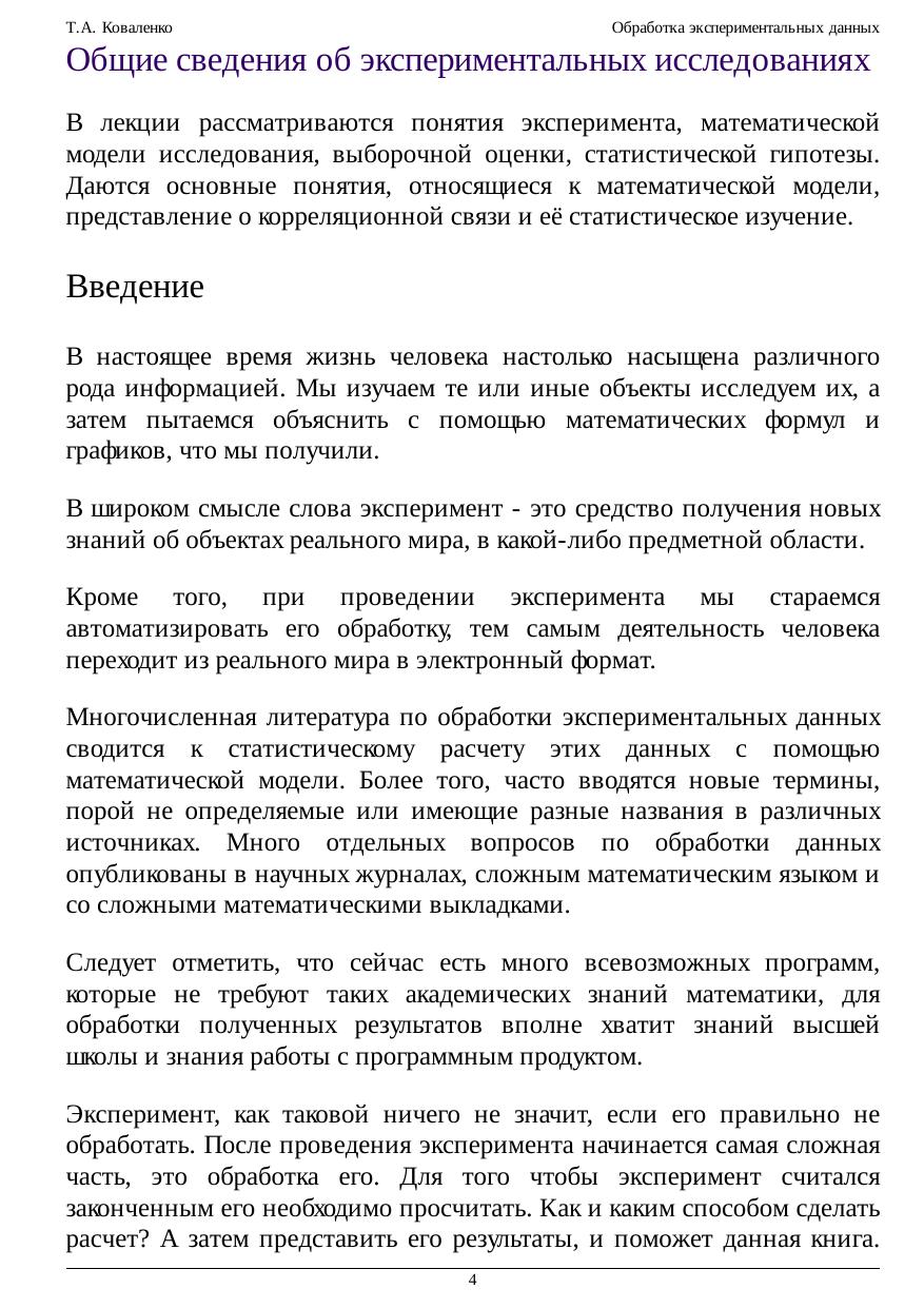 программными решениями. Для решения задач обработки данных используются различные статистические методы: проверка гипотез, оценивание параметров и числовых характеристик случайных величин и процессов, корреляционный и дисперсионный анализ. Чтобы решение задачи было проведено качественно, необходимо провести предварительную обработку данных, для того чтобы не возвращаться повторно к решению той или иной задачи после получения результатов на последующем этапе обработки. Чтобы понять, с помощью, какой программы, или каким методом проводить обработку данных, необходимо помнить, что при наблюдении и проведении эксперимента встречаются ошибки грубые, систематические и случайные. В зависимости от точности и сложности эксперимента выбираются и методы обработки данных. Если эксперимент не предполагает особой точности и сложности можно выбрать простую программу и провести статистическую обработку, если же необходима высокая точность измерения, то и программу необходимо выбирать более сложную. Другими словами технология обработки экспериментальных данных зависит от того результата, к которому Вы стремитесь.
