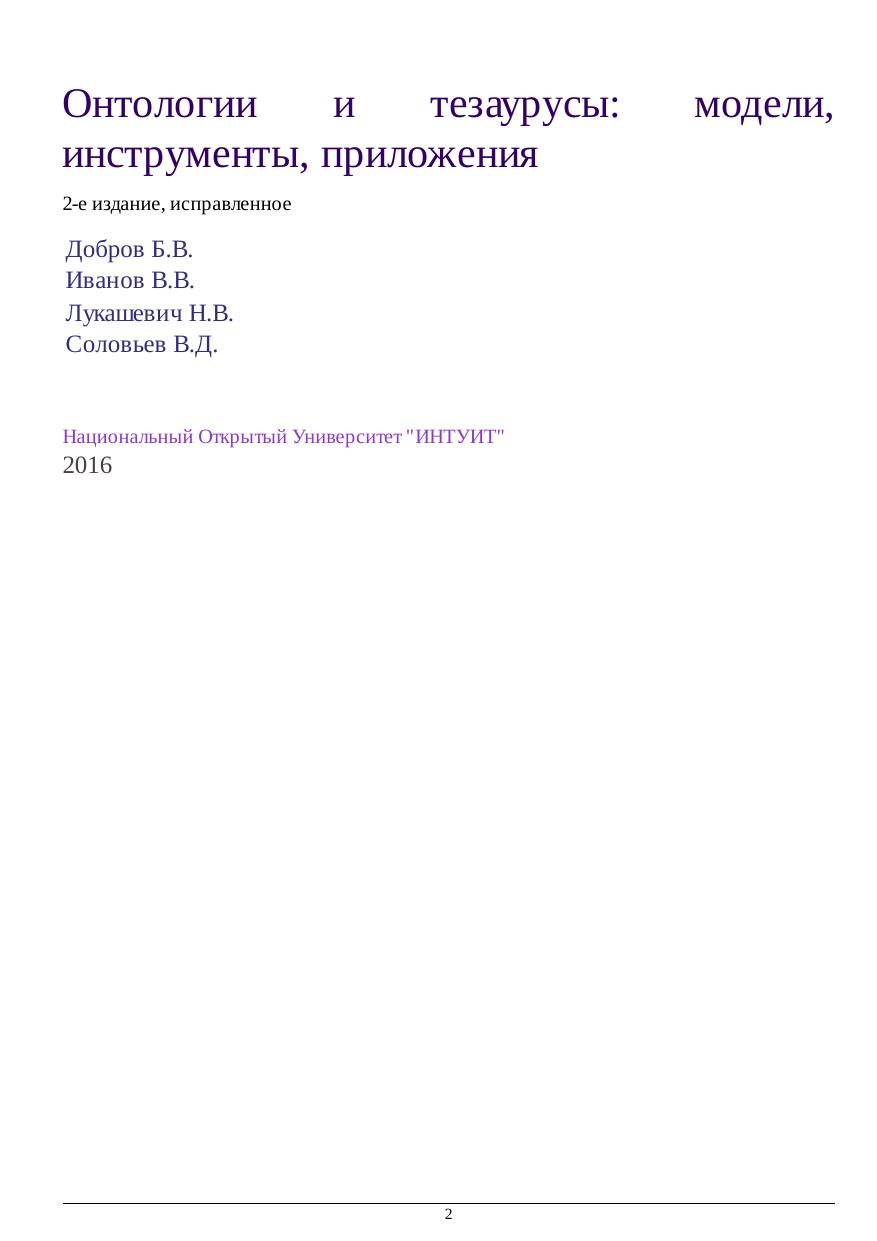 Онтологии и тезаурусы: модели, инструменты, приложения