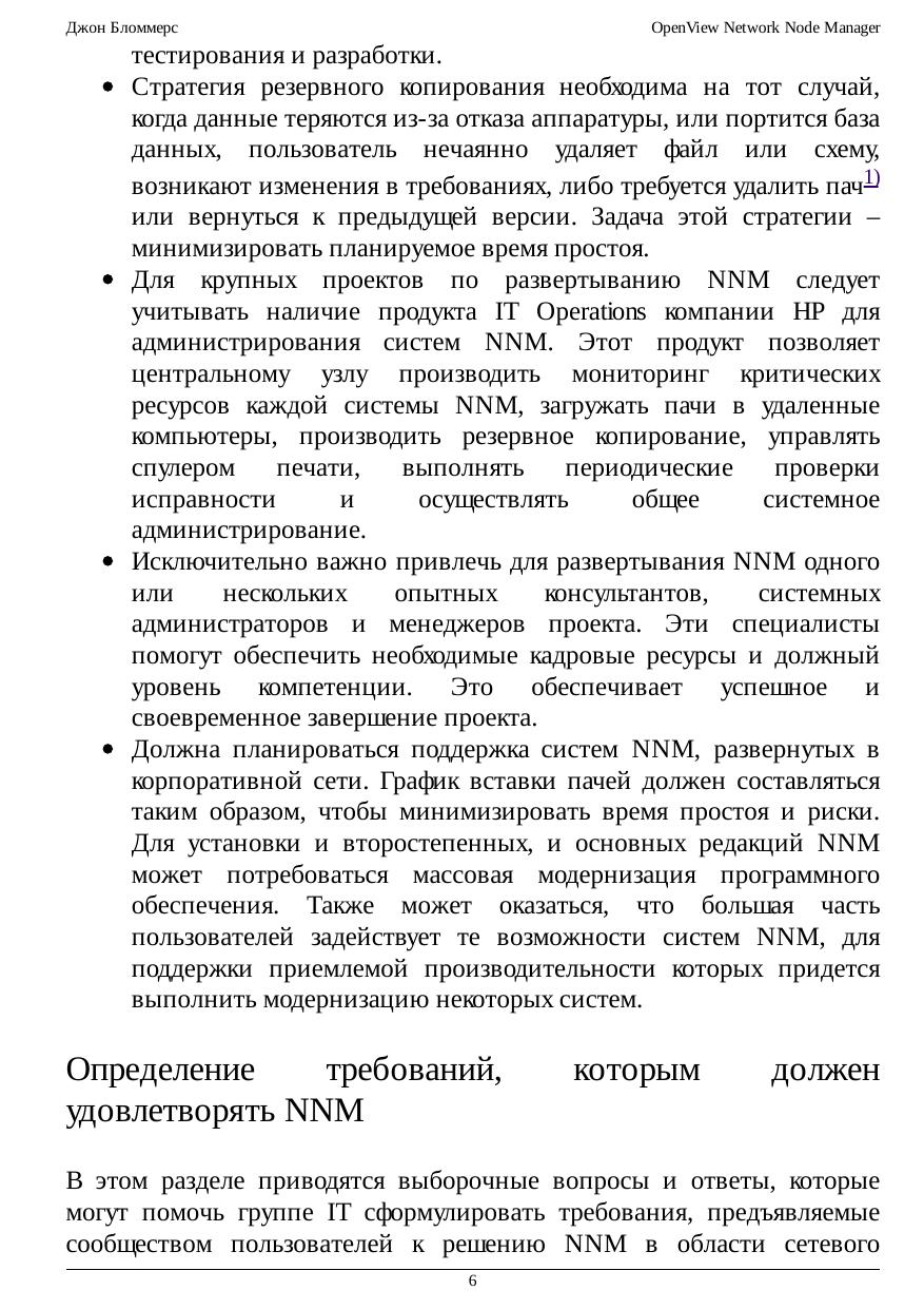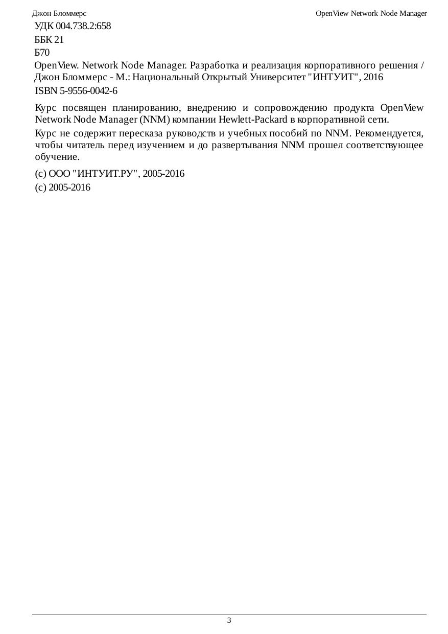 Курс посвящен планированию, внедрению и сопровождению продукта OpenView Network Node Manager (NNM) компании Hewlett-Packard в корпоративной сети. Курс не содержит пересказа руководств и учебных пособий по NNM. Рекомендуется, чтобы читатель перед изучением и до развертывания NNM прошел соответствующее обучение.