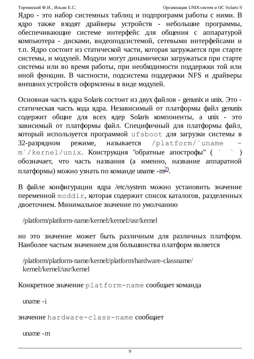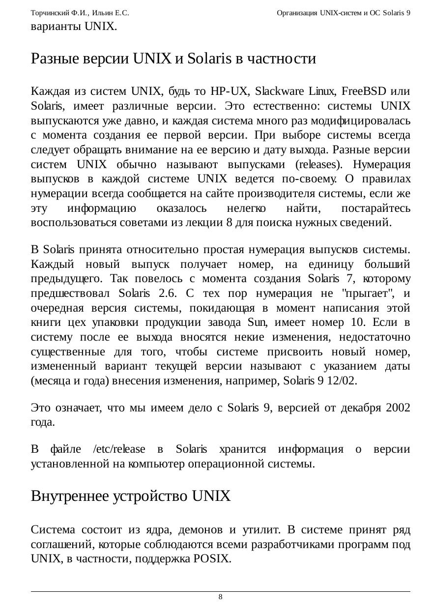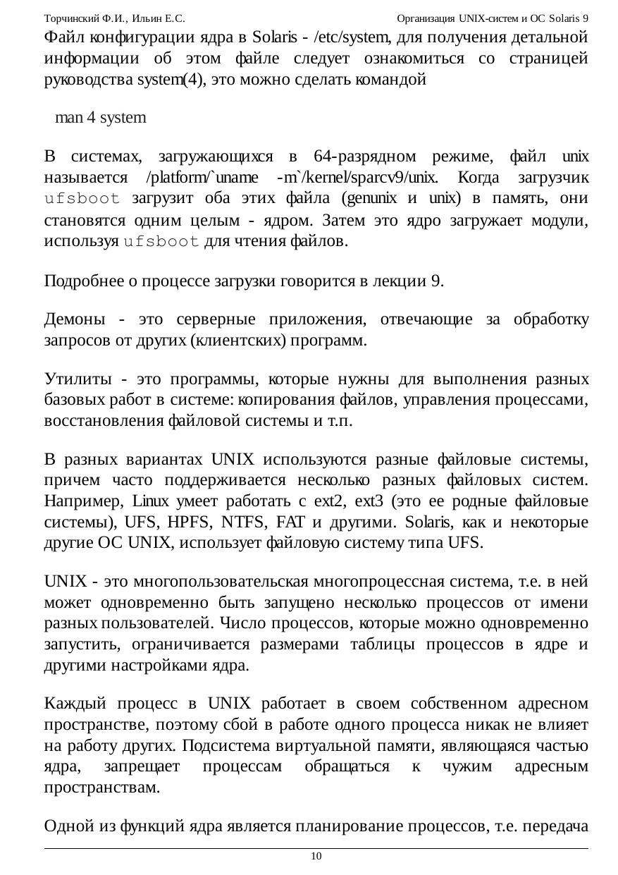 Организация UNIX-систем и ОС Solaris 9
