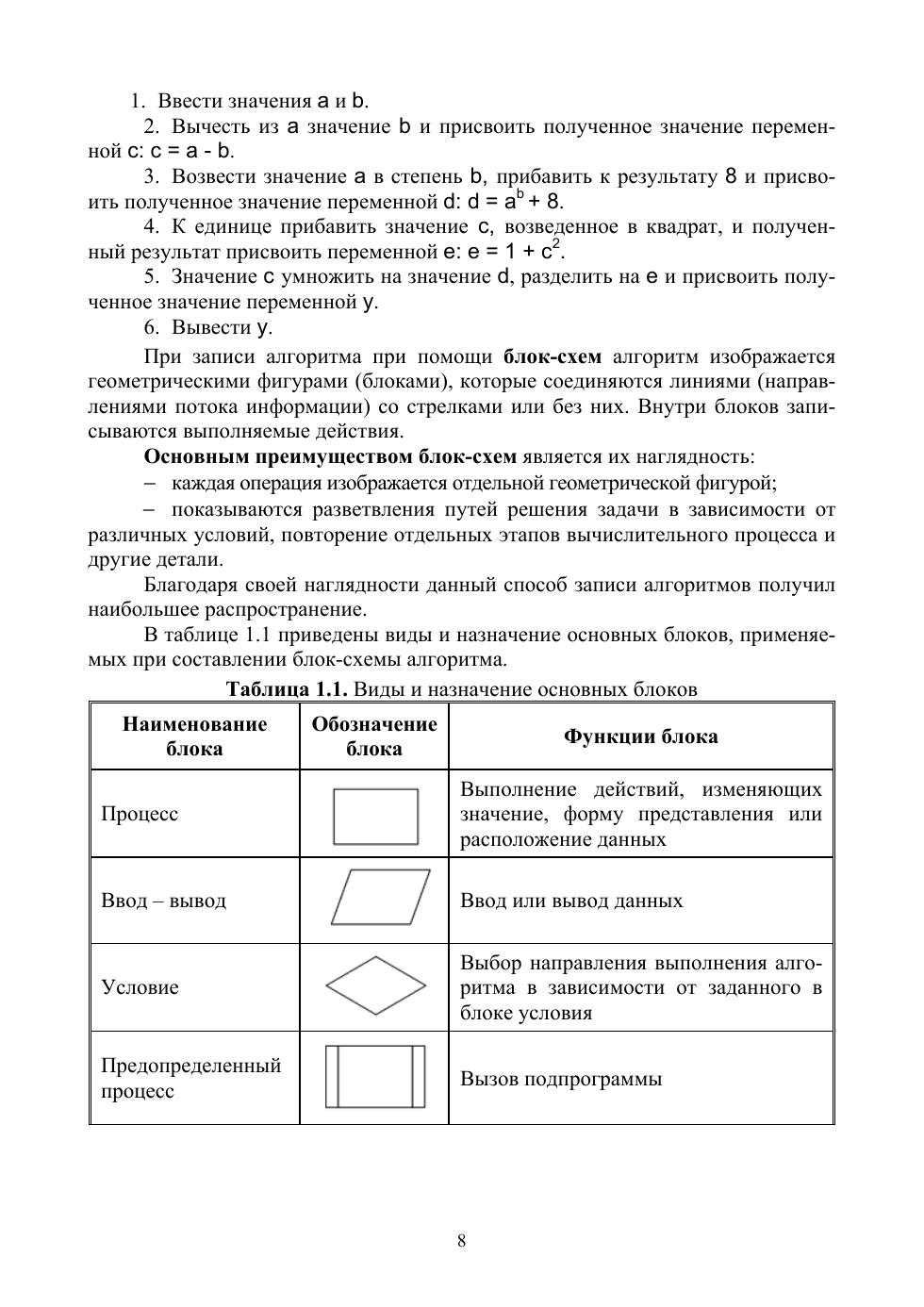 Пособие предназначено для обучения основам алгоритмизации и программирования на языке Паскаль. В нем излагаются основные сведения по составлению блок-схем алгоритмов, рассматривается синтаксис языка, приводятся примеры алгоритмов и программ. Для лучшего восприятия теоретический материал поясняется рисунками и таблицами, сопровождается примерами с подробными комментариями и результатом выполнения программ.