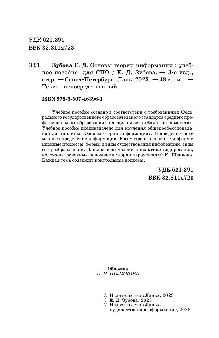 Учебное пособие создано в соответствии с требованиями Федерального государственного образовательного стандарта среднего профессионального образования по специальности Компьютерные сети. Учебное пособие предназначено для изучения общепрофессиональной дисциплины Основы теории информации. Приведено современное определение информации. Рассмотрены основные информационные процессы, формы и виды существования информации, виды ее преобразований. Даны основы теории и практики кодирования, изложены основные положения теории вероятностей К. Шеннона. Каждая тема содержит контрольные вопросы.