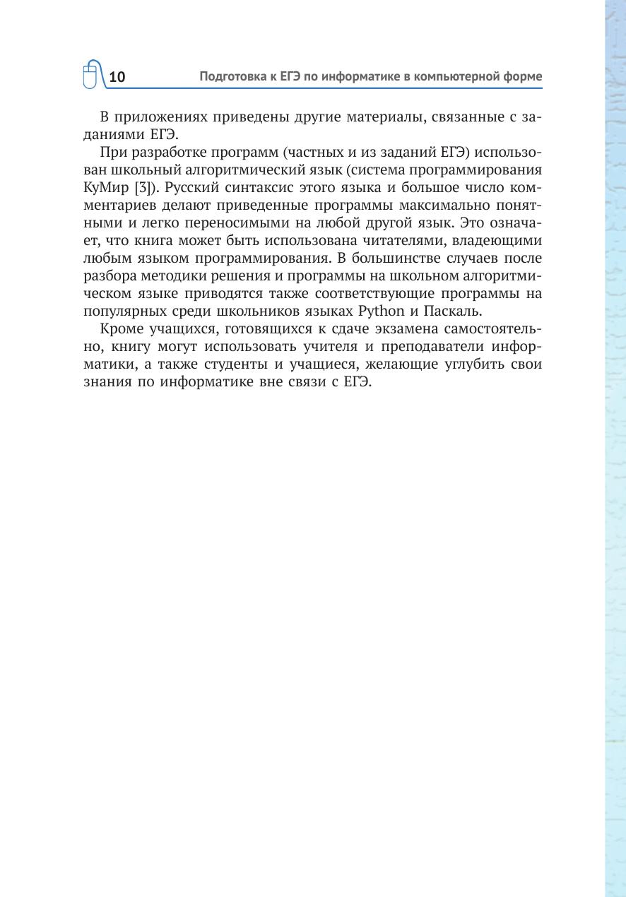 Кроме учащихся старших классов, готовящихся к сдаче экзамена, книгу могут использовать преподаватели информатики, а также студенты и школьники, желающие углубить общие знания по информатике и ИКТ.
