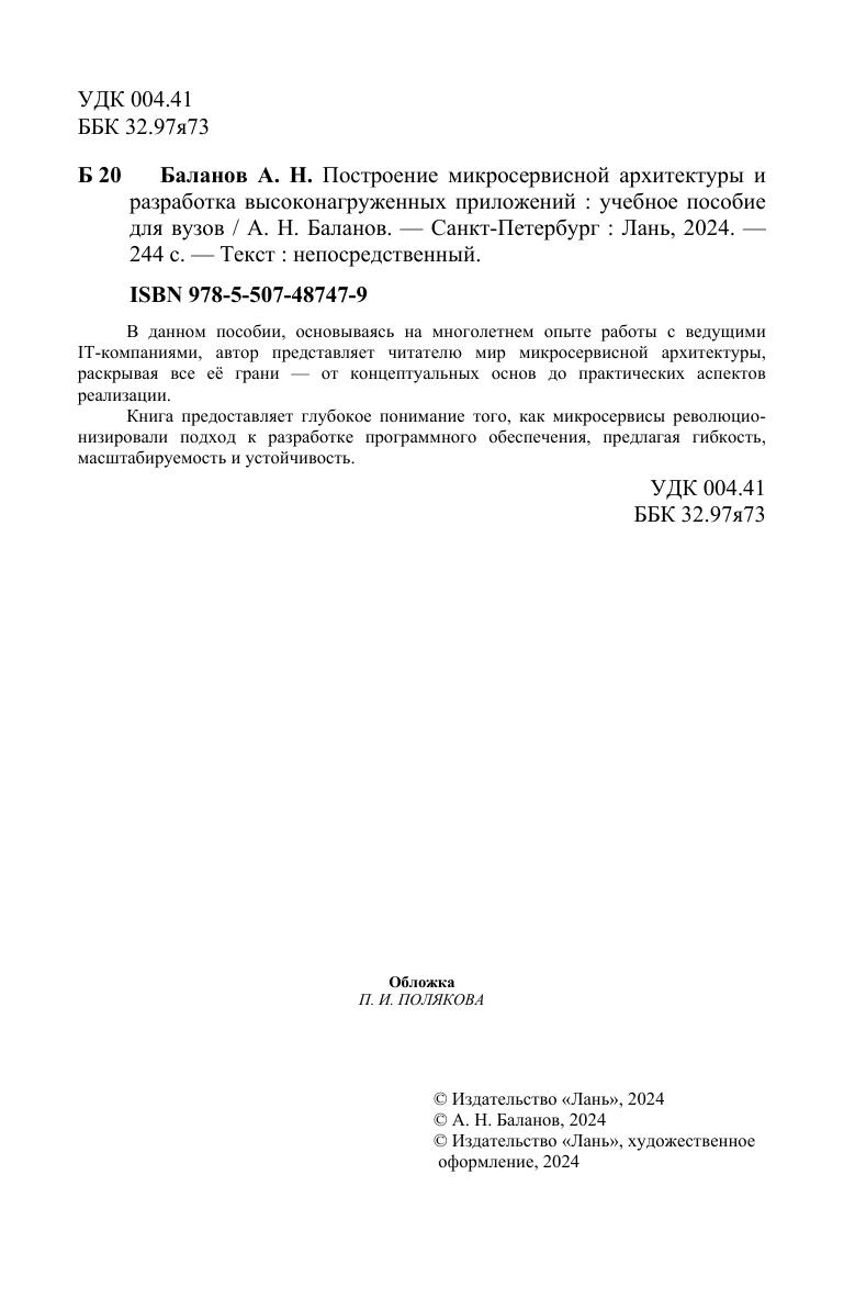 В данном пособии, основываясь на многолетнем опыте работы с ведущими IT-компаниями, автор представляет читателю мир микросервисной архитектуры, раскрывая все её грани — от концептуальных основ до практических аспектов реализации. Книга предоставляет глубокое понимание того, как микросервисы революционизировали подход к разработке программного обеспечения, предлагая гибкость, масштабируемость и устойчивость.