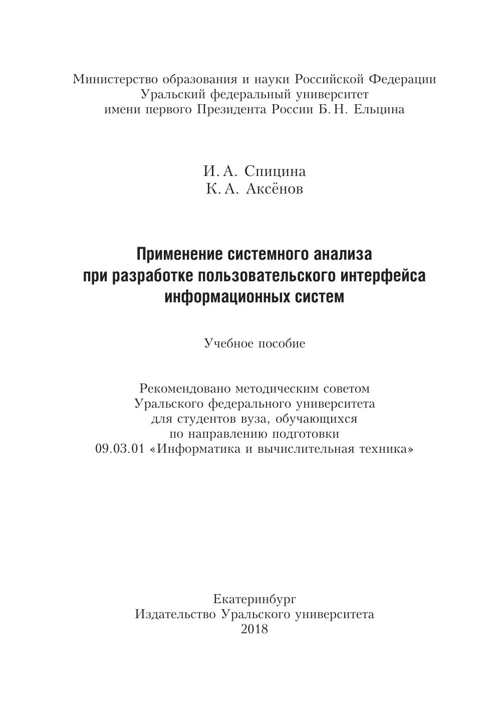 Применение системного анализа при разработке пользовательского интерфейса информационных систем