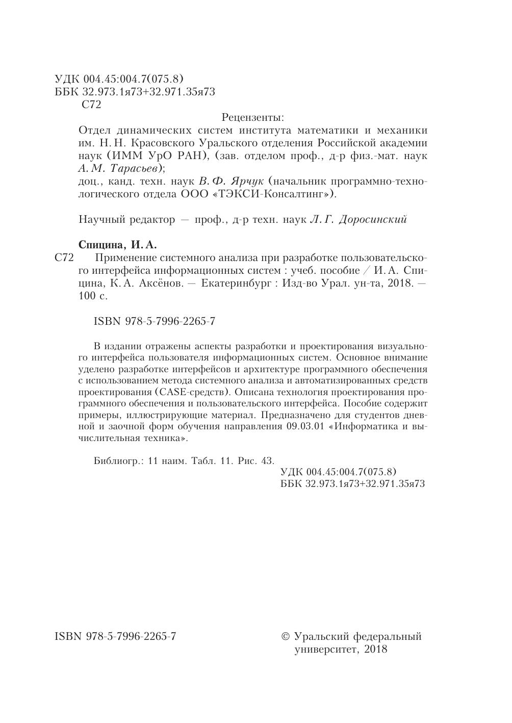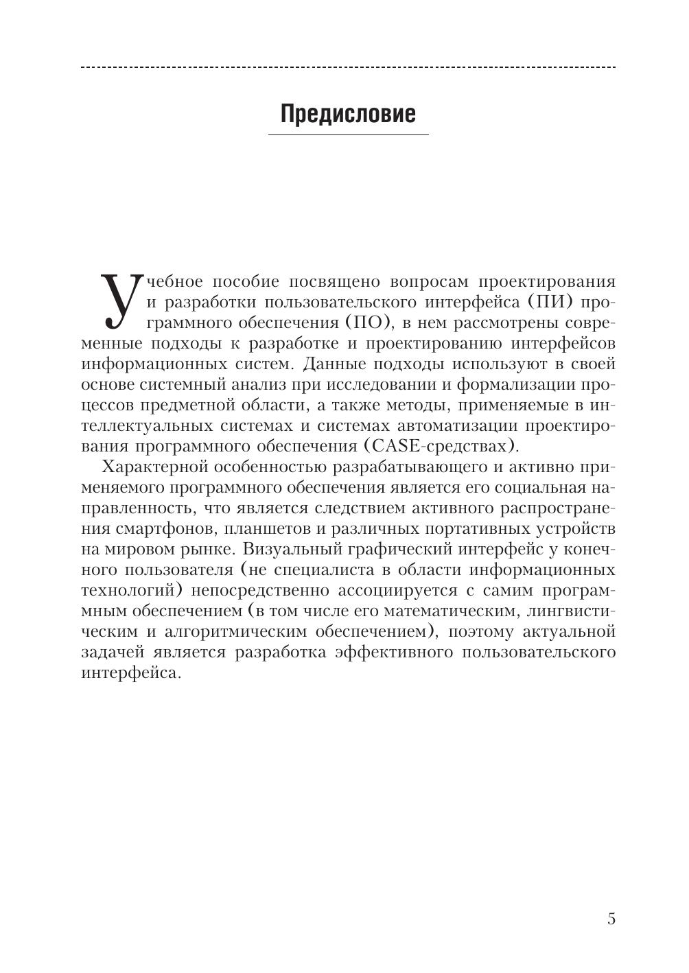 В издании отражены аспекты разработки и проектирования визуального интерфейса пользователя информационных систем. Основное внимание уделено разработке интерфейсов и архитектуре программного обеспечения с использованием метода системного анализа и автоматизированных средств проектирования (CASE-средств). Описана технология проектирования программного обеспечения и пользовательского интерфейса. Пособие содержит примеры, иллюстрирующие материал. Предназначено для студентов дневной и заочной форм обучения направления 09.03.01 «Информатика и вычислительная техника».