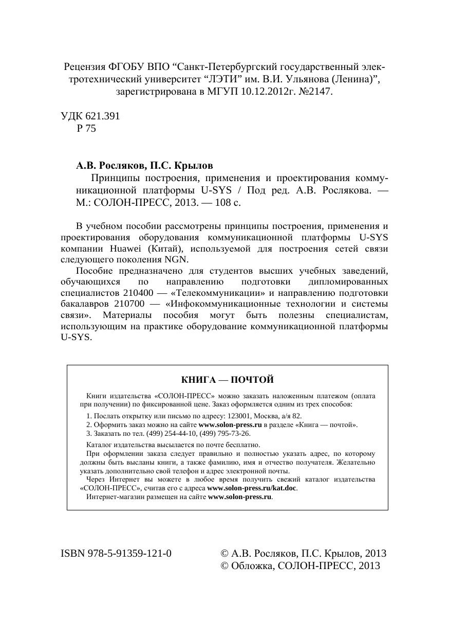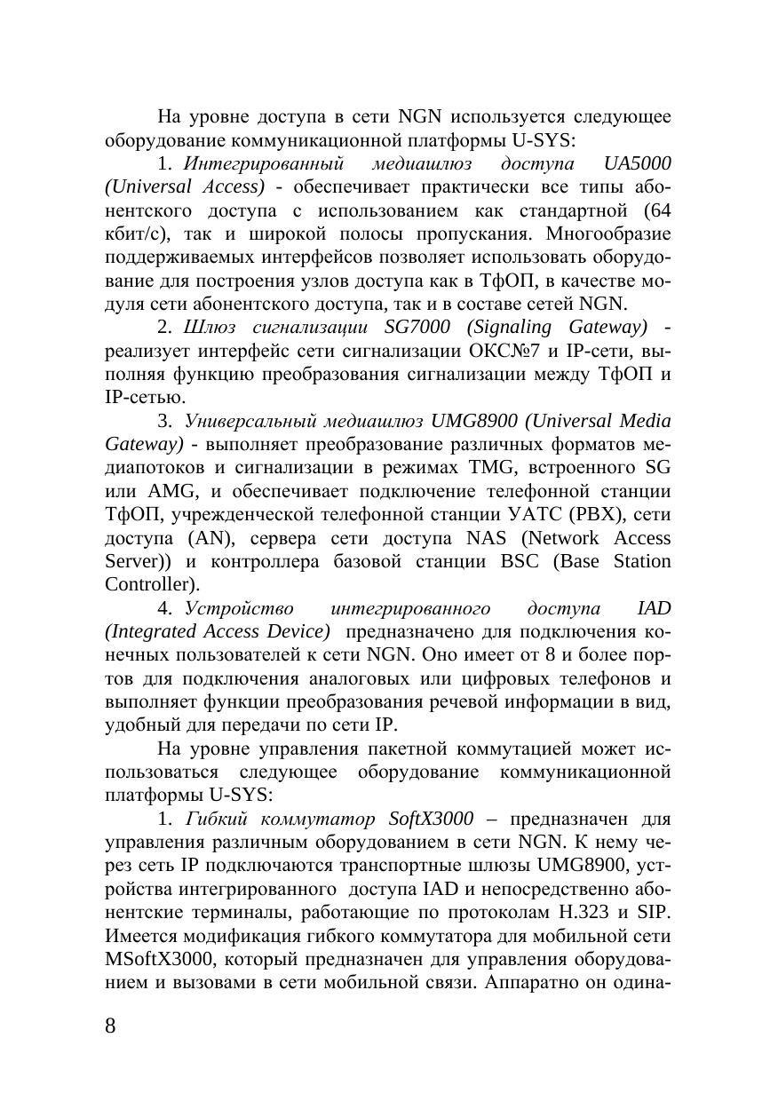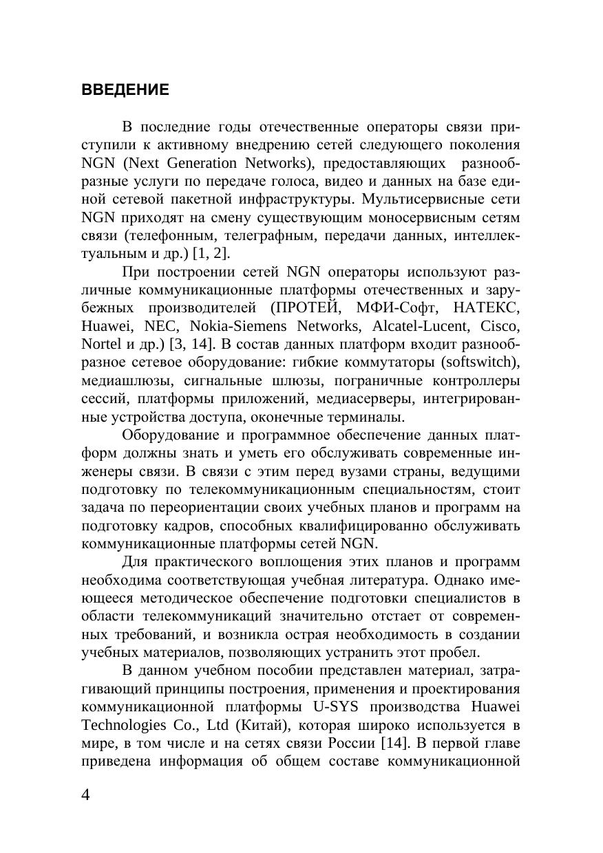 В учебном пособии рассмотрены принципы построения, применения и проектирования оборудования коммуникационной платформы U-SYS компании Huawei (Китай), используемой для построения сетей связи следующего поколения NGN. Пособие предназначено для студентов высших учебных заведений, обучающихся по направлению подготовки дипломированных специалистов 210400 — «Телекоммуникации» и направлению подготовки бакалавров 210700 — «Инфокоммуникационные технологии и системы связи». Материалы пособия могут быть полезны специалистам, использующим на практике оборудование коммуникационной платформы U-SYS.