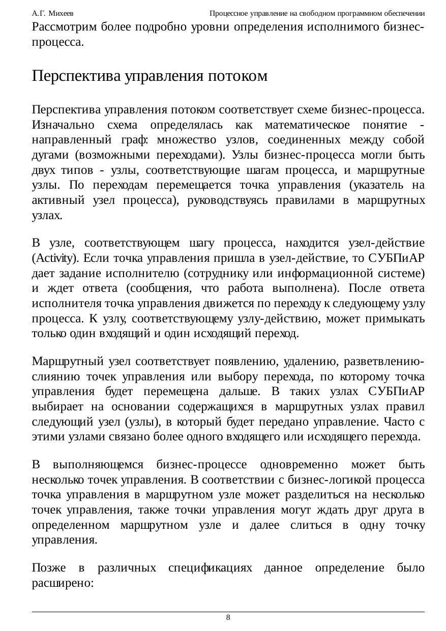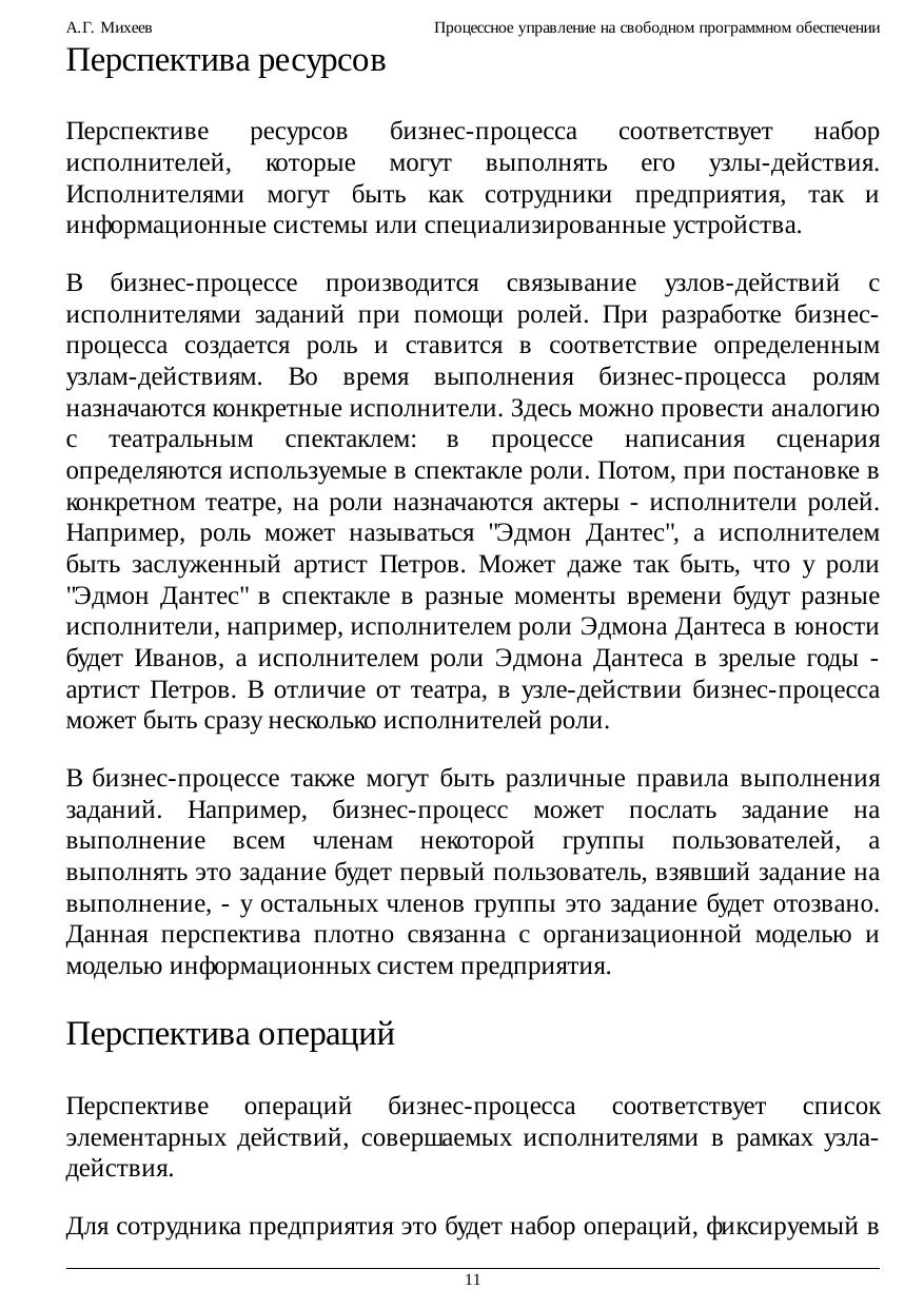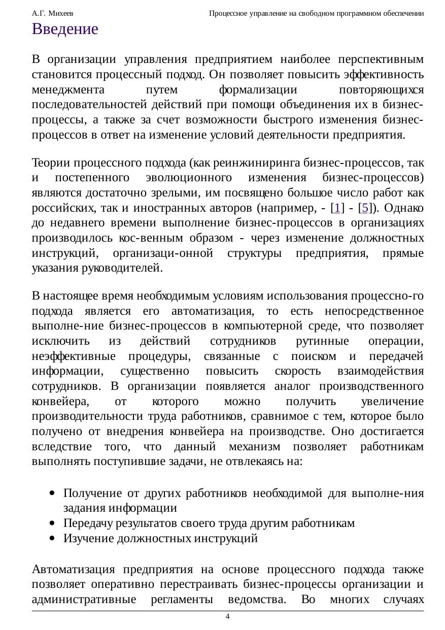Рассмотрены четыре перспективы исполнимых бизнес-процессов. Дано описание основных элементов систем управления административными и бизнес-процессами. Показано, как разрабатывать и исполнять бизнес-процессы. Описание работы с системой управления бизнес-процессами и административными регламентами производится на примере свободного ПО с открытым кодом RunaWFE. Приведен порядок выполнения практических занятий.