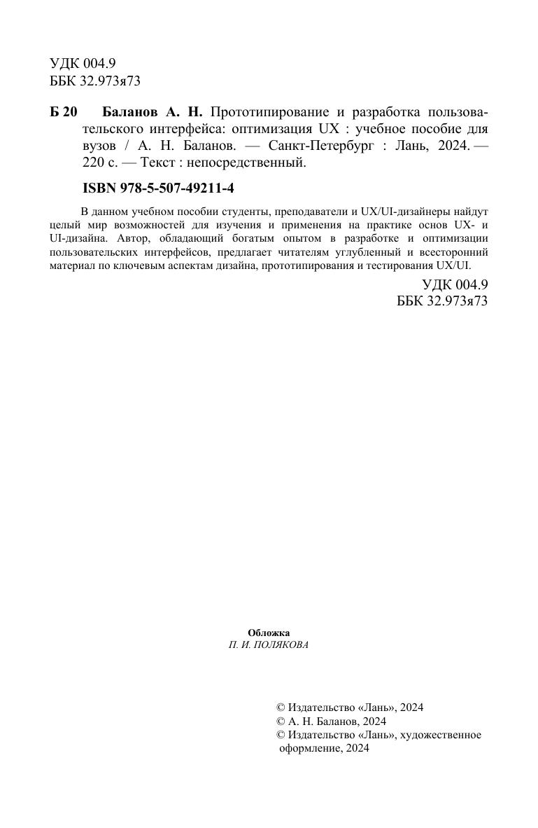 В данном учебном пособии студенты, преподаватели и UX/UI-дизайнеры найдут целый мир возможностей для изучения и применения на практике основ UX- и UI-дизайна. Автор, обладающий богатым опытом в разработке и оптимизации пользовательских интерфейсов, предлагает читателям углубленный и всесторонний материал по ключевым аспектам дизайна, прототипирования и тестирования UX/UI.