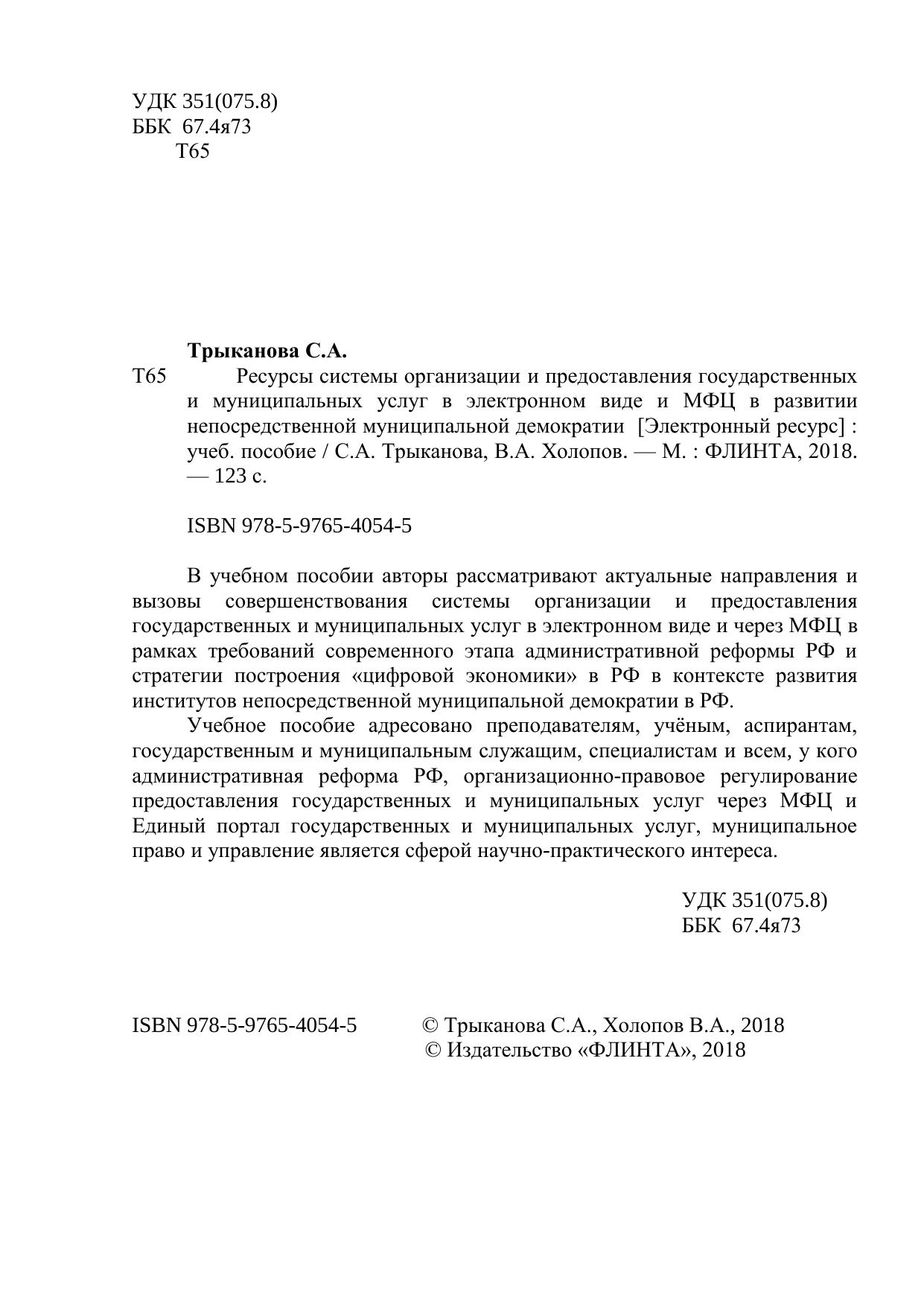 Учебное пособие адресовано преподавателям, учёным, аспирантам, государственным и муниципальным служащим, специалистам и всем, у кого административная реформа РФ, организационно-правовое регулирование предоставления государственных и муниципальных услуг через МФЦ и Единый портал государственных и муниципальных услуг, муниципальное право и управление является сферой научно-практического интереса.