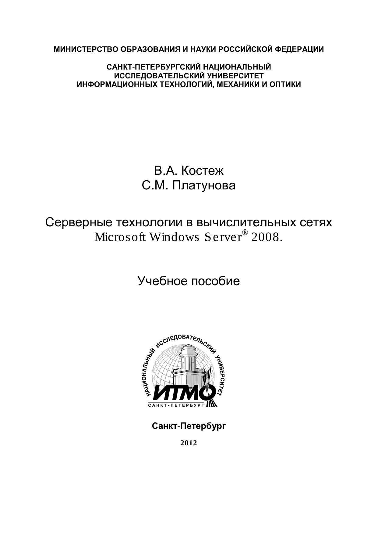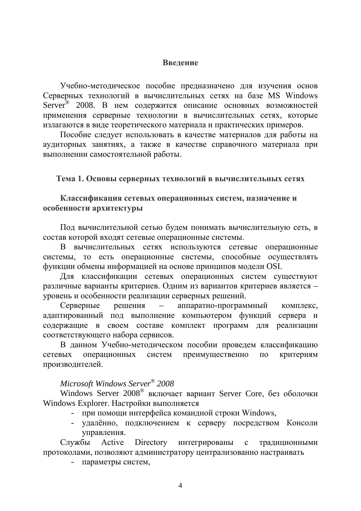 Серверные технологии в вычислительных сетях Microsoft Windows Server® 2008. Учебное пособие