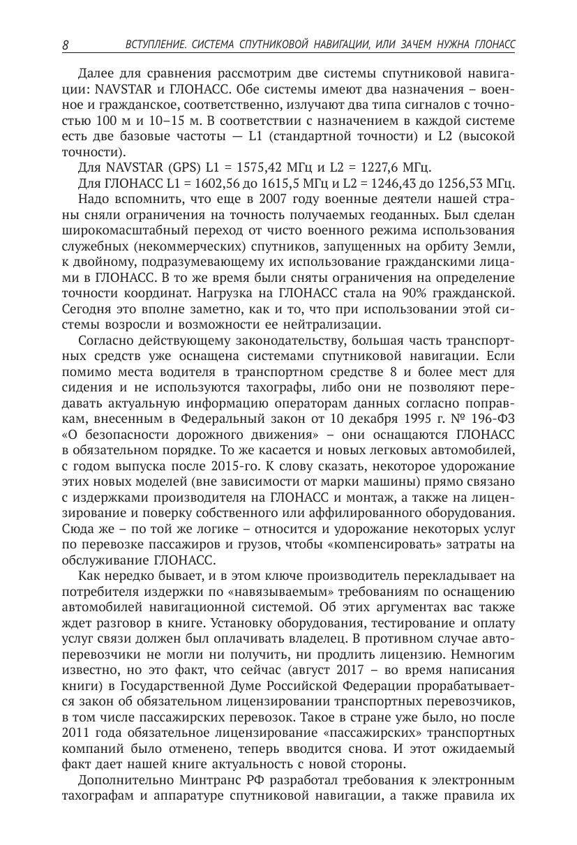 Глобальная навигационная спутниковая система (ГЛОНАСС), разработанная в советское время для военных целей, сегодня активно применяется в транспортной инфраструктуре. Главная задача ГЛОНАСС - определять местоположение и скорость движения в современных электронных устройствах, дополнена полезным многоуровневым функционалом, доступным для осуществления контроля и безопасности. С помощью данной книги вы сможете ознакомиться с новыми инновационными разработками по этой теме, научитесь «расшифровывать» данные со спутников, получите ответы на актуальные для специалистов отрасли вопросы по функционалу, выбору, монтажу и эксплуатации ГЛОНАСС-систем. Издание предназначено для широкого круга читателей.