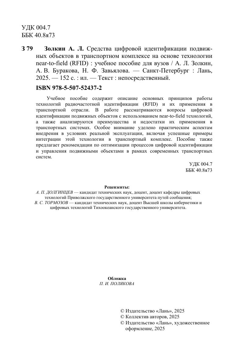 Учебное пособие содержит описание основных принципов работы технологий радиочастотной идентификации (RFID) и их применения в транспортной отрасли. В работе рассматриваются вопросы цифровой идентификации подвижных объектов с использованием near-to-field технологий, а также анализируются преимущества и недостатки их применения в транспортных системах. Особое внимание уделено практическим аспектам внедрения в условиях реальной эксплуатации, включая успешные примеры интеграции этой технологии в транспортный комплекс. Пособие также предлагает рекомендации по оптимизации процессов цифровой идентификации и управления подвижными объектами в рамках современных транспортных систем.