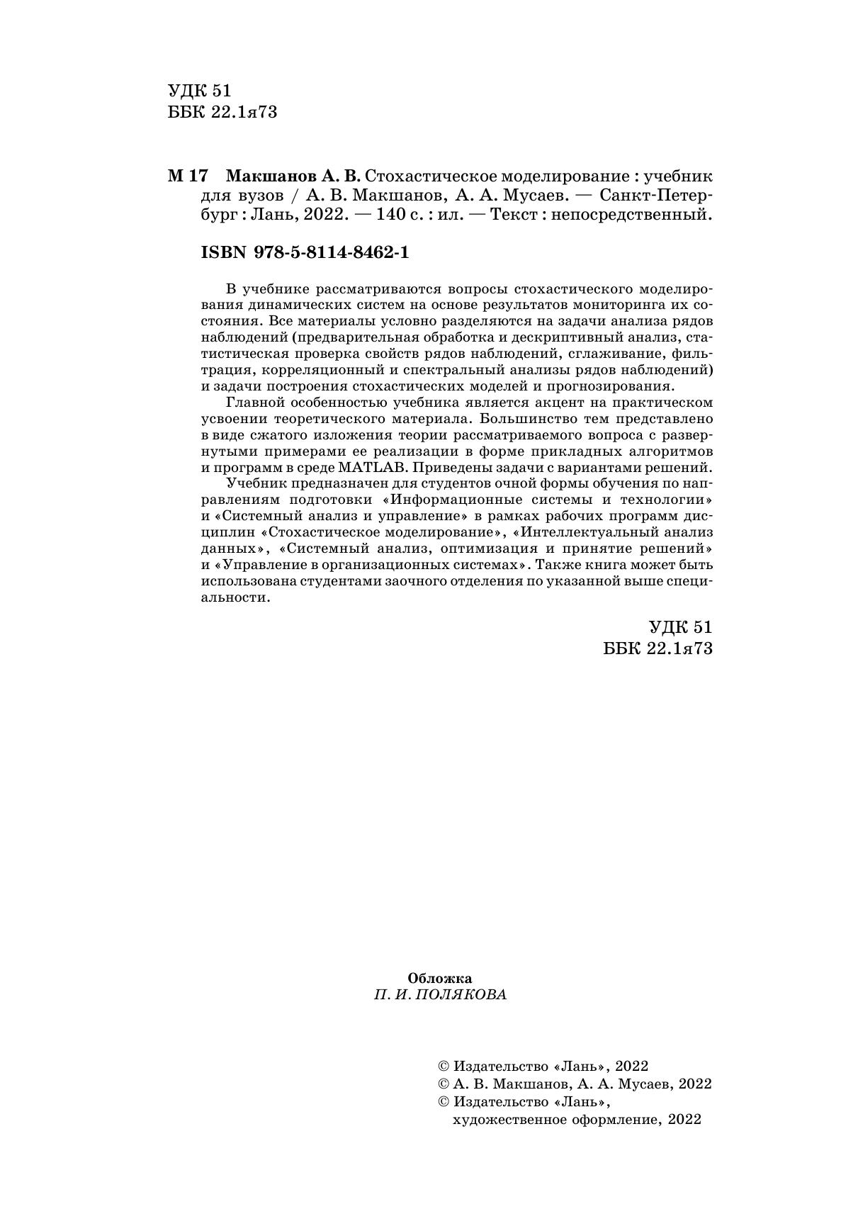 В учебнике рассматриваются вопросы стохастического моделирования динамических систем на основе результатов мониторинга их состояния. Все материалы условно разделяются на задачи анализа рядов наблюдений (предварительная обработка и дескриптивный анализ, статистическая проверка свойств рядов наблюдений, сглаживание, фильтрация, корреляционный и спектральный анализы рядов наблюдений) и задачи построения стохастических моделей и прогнозирования.