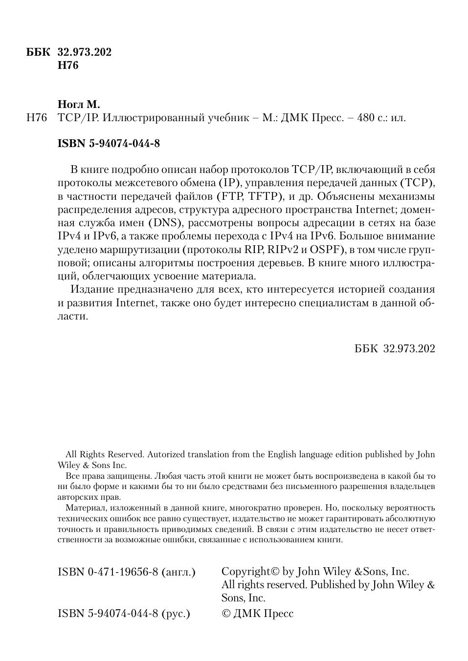 В книге подробно описан набор протоколов TCP/IP, включающий в себя протоколы межсетевого обмена (IP), управления передачей данных (TCP), в частности передачей файлов (FTP, TFTP), и др. Объяснены механизмы распределения адресов, структура адресного пространства Internet, доменная служба имен (DNS), рассмотрены вопросы адресации в сетях на базе IPv4 и IPv6, а также проблемы перехода с IPv4 на IPv6. Большое внимание уделено маршрутизации (протоколы RIP, RIPv2 и OSPF), в том числе групповой, описаны алгоритмы построения деревьев. В книге много иллюстраций, облегчающих усвоение материала. Издание предназначено для всех, кто интересуется историей создания и развития Internet, также оно будет интересно специалистам в данной области.