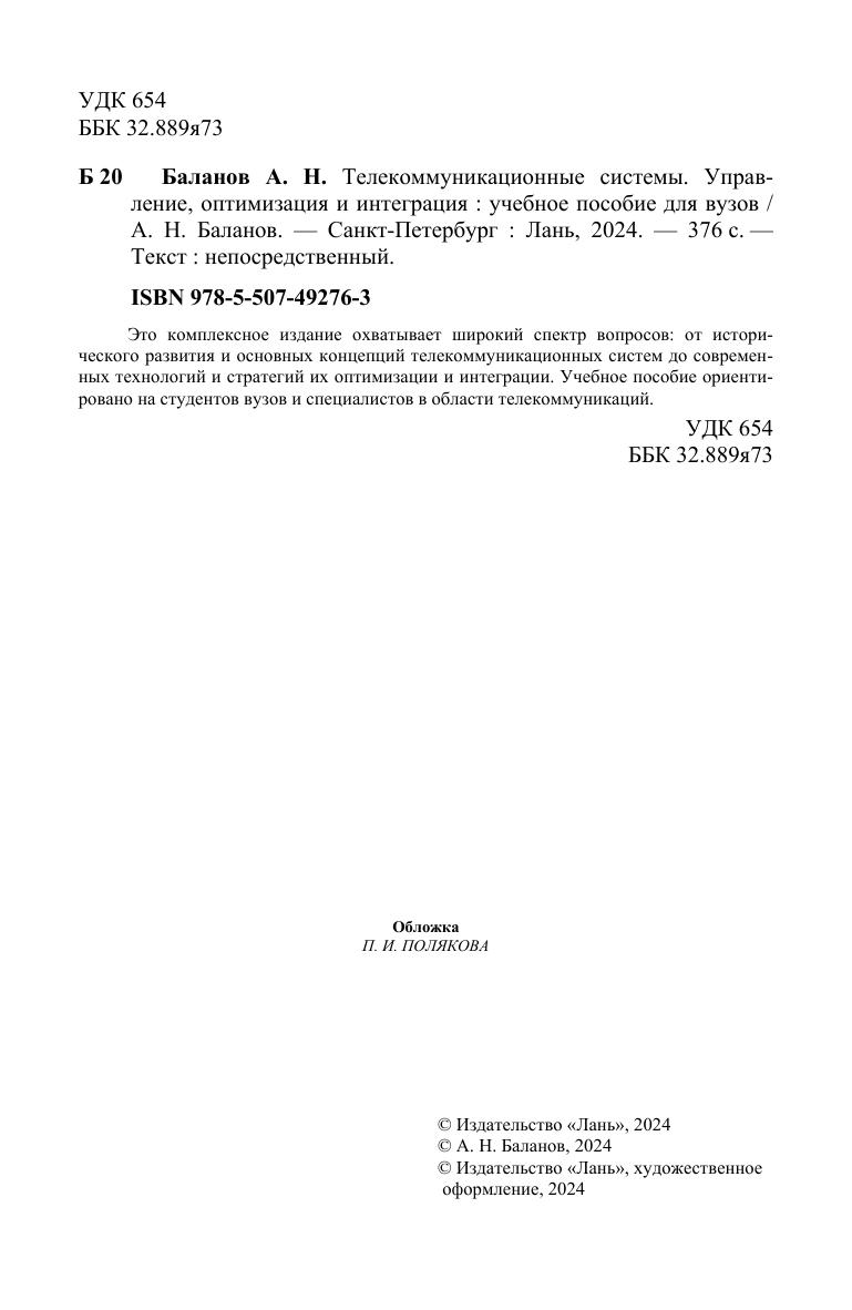 Это комплексное издание охватывает широкий спектр вопросов: от исторического развития и основных концепций телекоммуникационных систем до современных технологий и стратегий их оптимизации и интеграции. Учебное пособие ориентировано на студентов вузов и специалистов в области телекоммуникаций.