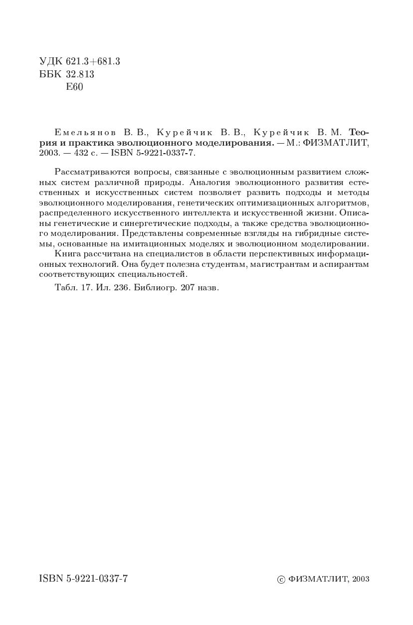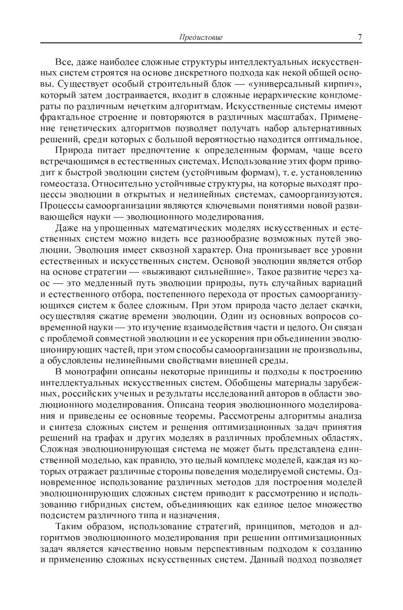 Рассматриваются вопросы, связанные с эволюционным развитием сложных систем различной природы. Аналогия эволюционного развитмя естественных и искуственных систем позволяет развить подходы и методы эволюционного моделирования, генетических оптимизационной жизни. Описаны генетические и синергетические подходы, а также аредства эволюционного моделирования. Представлены современные взгляды на гибридные системы, основанные на имитационных моделях и эволюционном моделировании. Книга расчитана на специалистов в области перспективных информационных технологий. Она будет полезна студентам, магистрантам и аспирантам соответствующих специальностей.