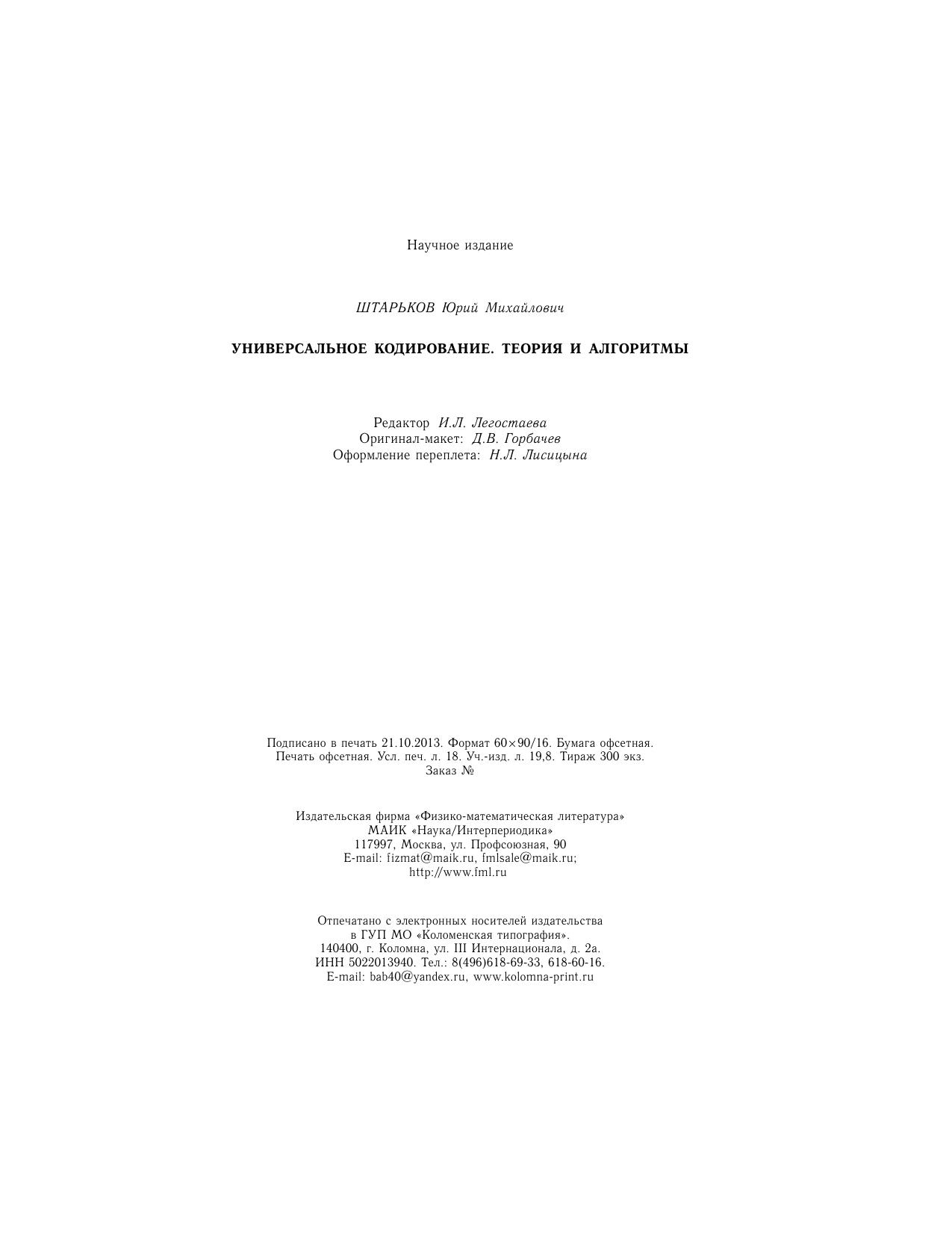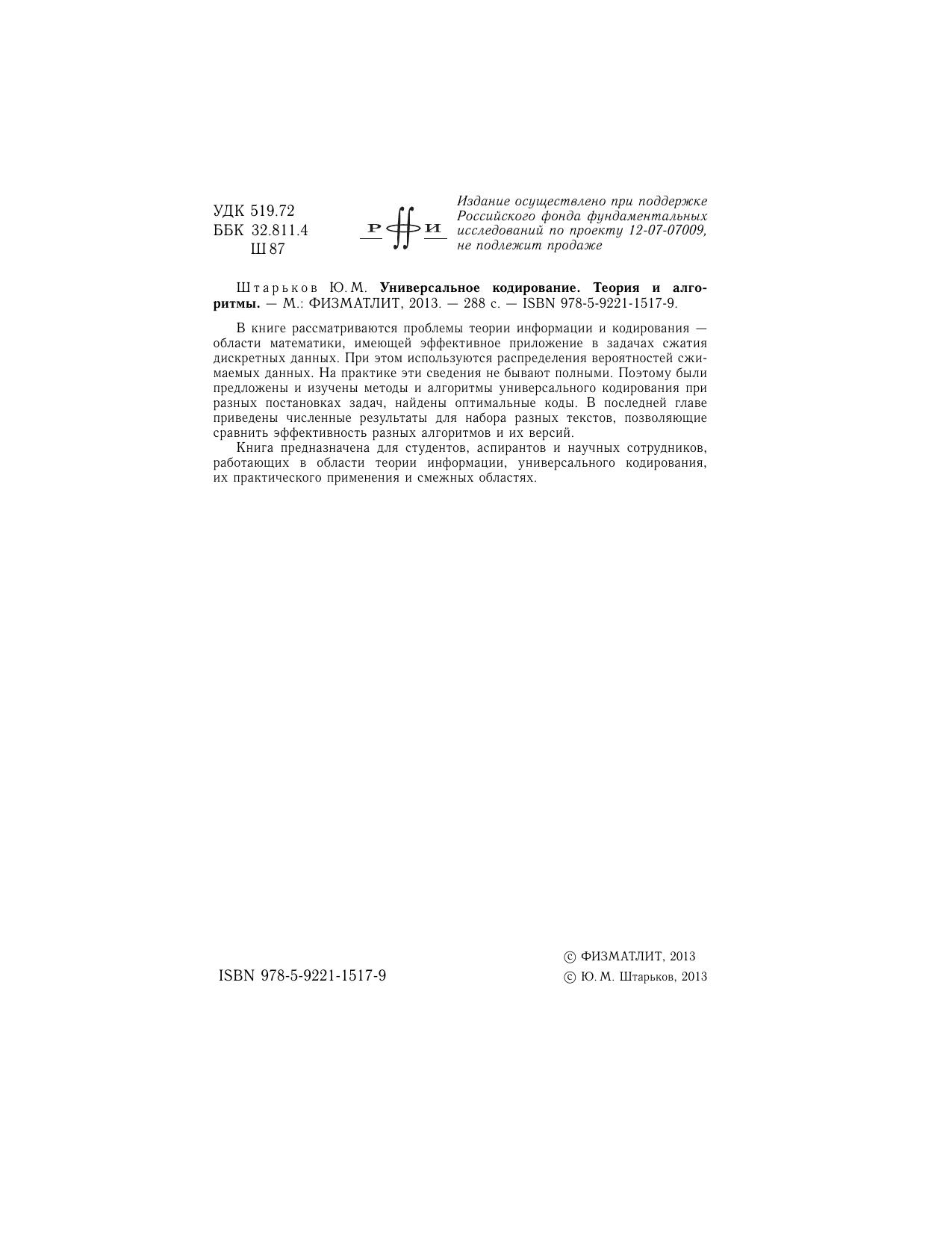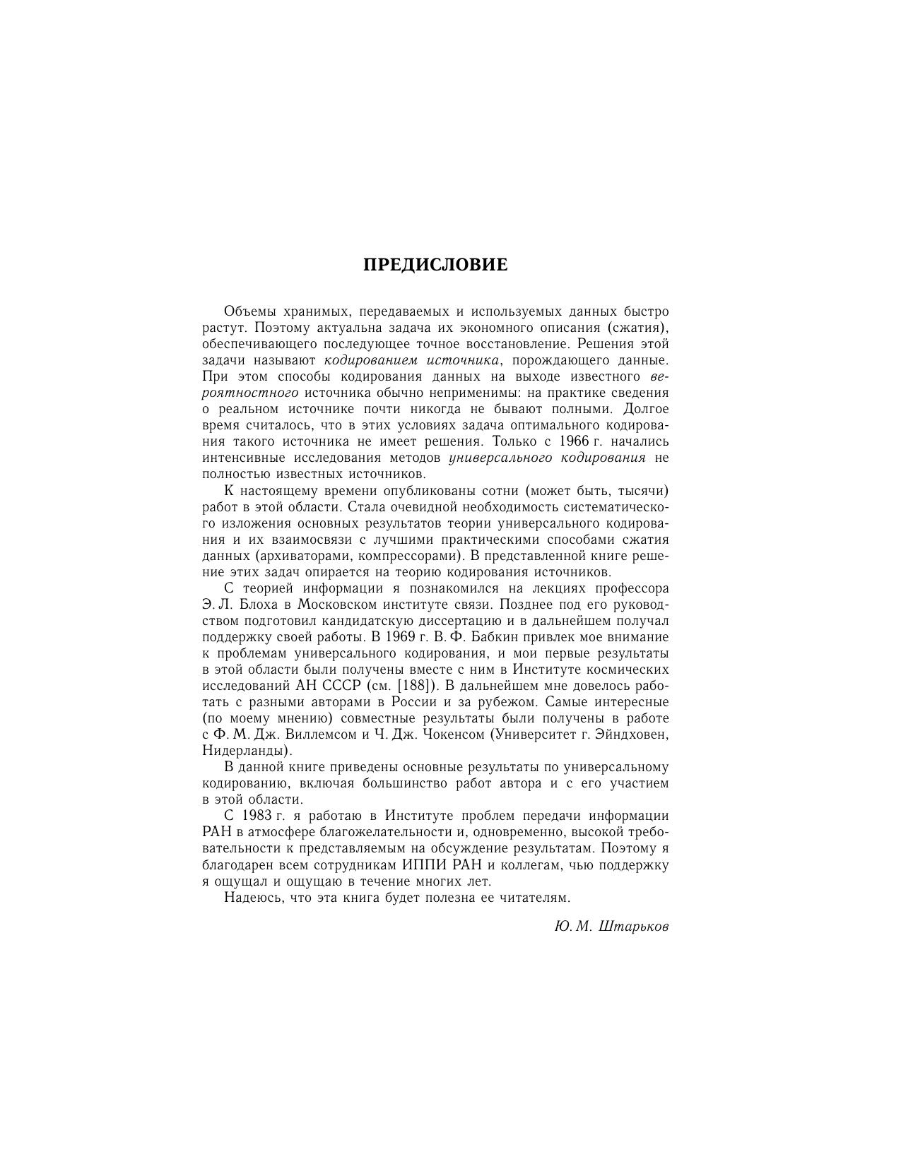 Книга предназначена для студентов, аспирантов и научных сотрудников, работающих в области теории информации, универсального кодирования, их практического применения и смежных областях.