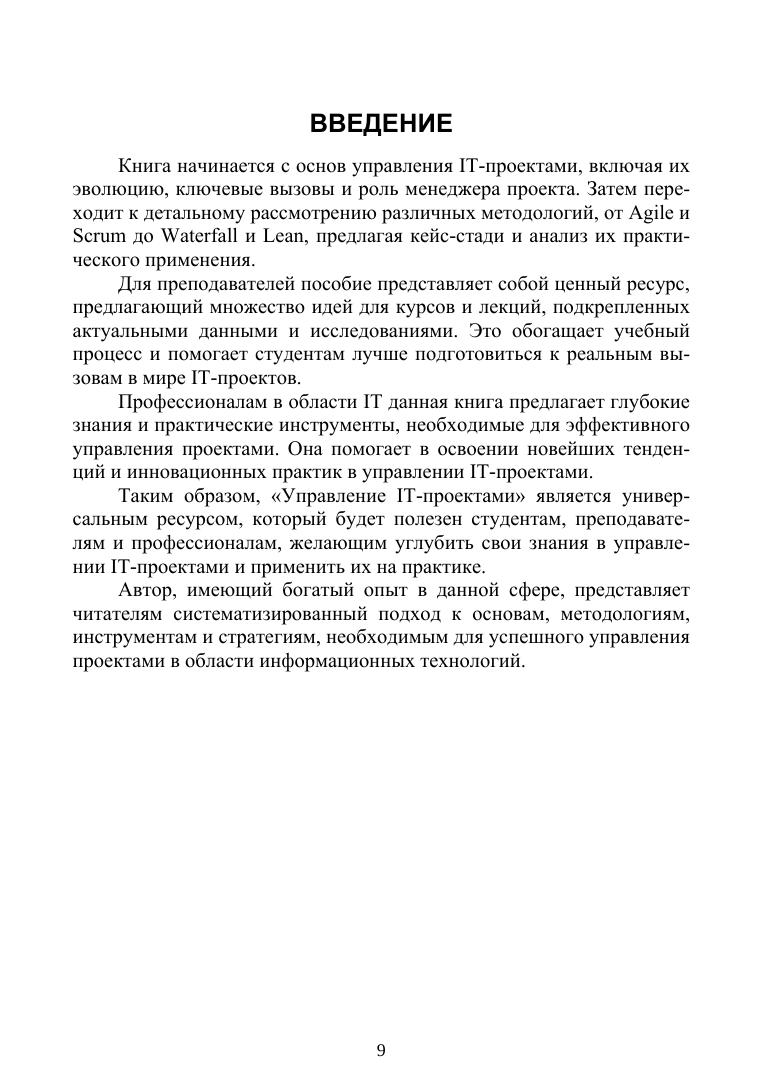 Данная книга — это комплексное учебное пособие, созданное для того, чтобы обеспечить студентов и специалистов глубокими знаниями и практическими навыками в области управления IT-проектами. Особое внимание уделено планированию проектов, управлению командами, риск-менеджменту и качеству в IT-проектах. Автор подробно рассматривает важность управления стейкхолдерами, финансового управления, а также использования современных инструментов и технологий, включая искусственный интеллект и большие данные. Книга также затрагивает темы этики, юридические аспекты, вопросы глобализации и карьерного развития в управлении IT-проектами, обеспечивая всесторонний взгляд на дисциплину. Подход к обучению включает в себя как теоретические основы, так и практические кейс-стади, что делает материал полезным не только для студентов, но и для профессионалов, стремящихся расширить свои знания в этой области.