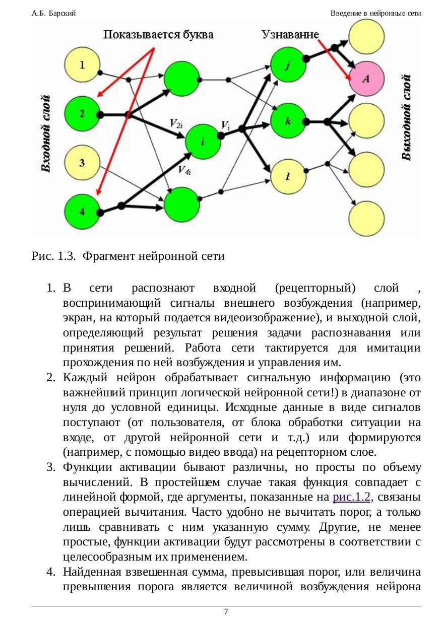 нейроном «нечёткой» логики (логических нейронных сетей), продиктован практикой ясного мышления человека. Этот подход приводит к построению всего лишь однослойных нейронных сетей с простейшей функцией активации нейрона, при необходимости дополненных обратными связями.