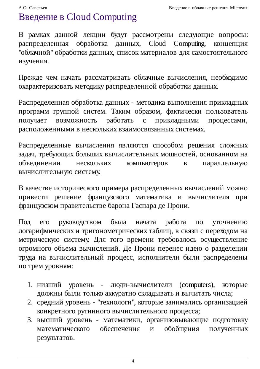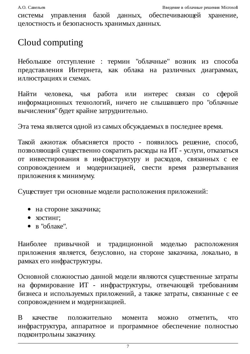 рассмотрим суть облачных вычислений, их возможности, а также технологии новой облачной платформы Microsoft. Концепция "облака" является одной из наиболее остро обсуждаемых, зачастую -